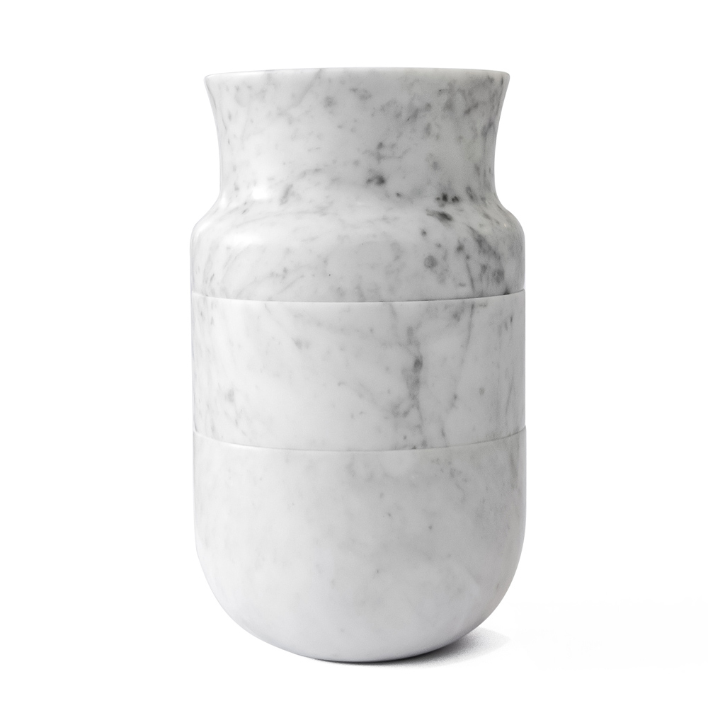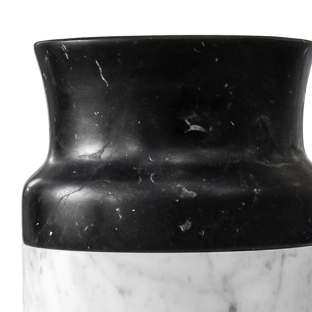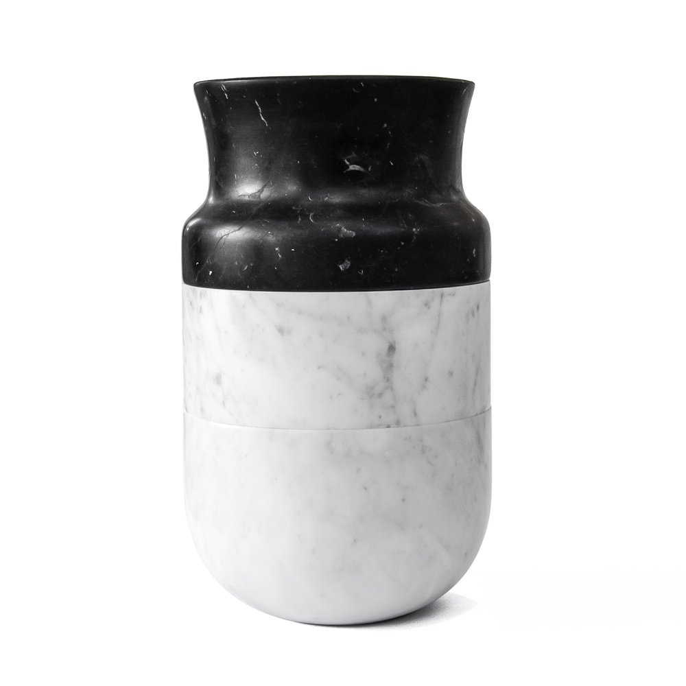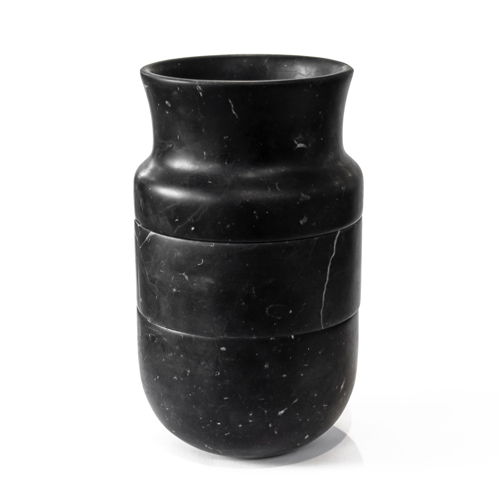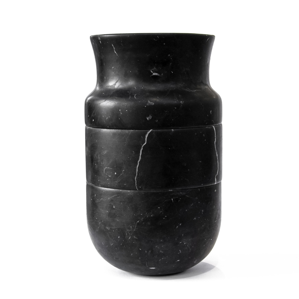 Vaza decorativa in 3 parti de design din marmura alba de Carrara sau Marquinia neagra fabricata in Italia.