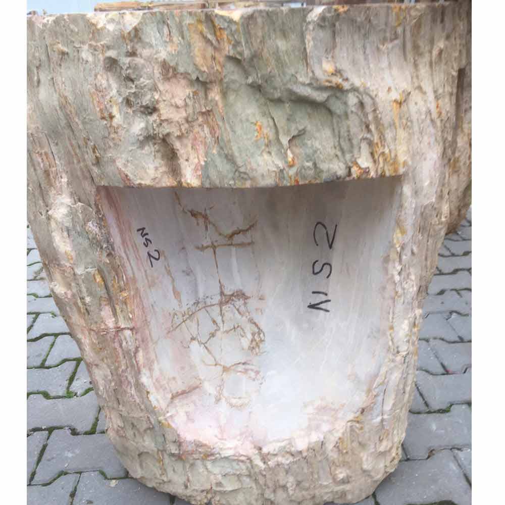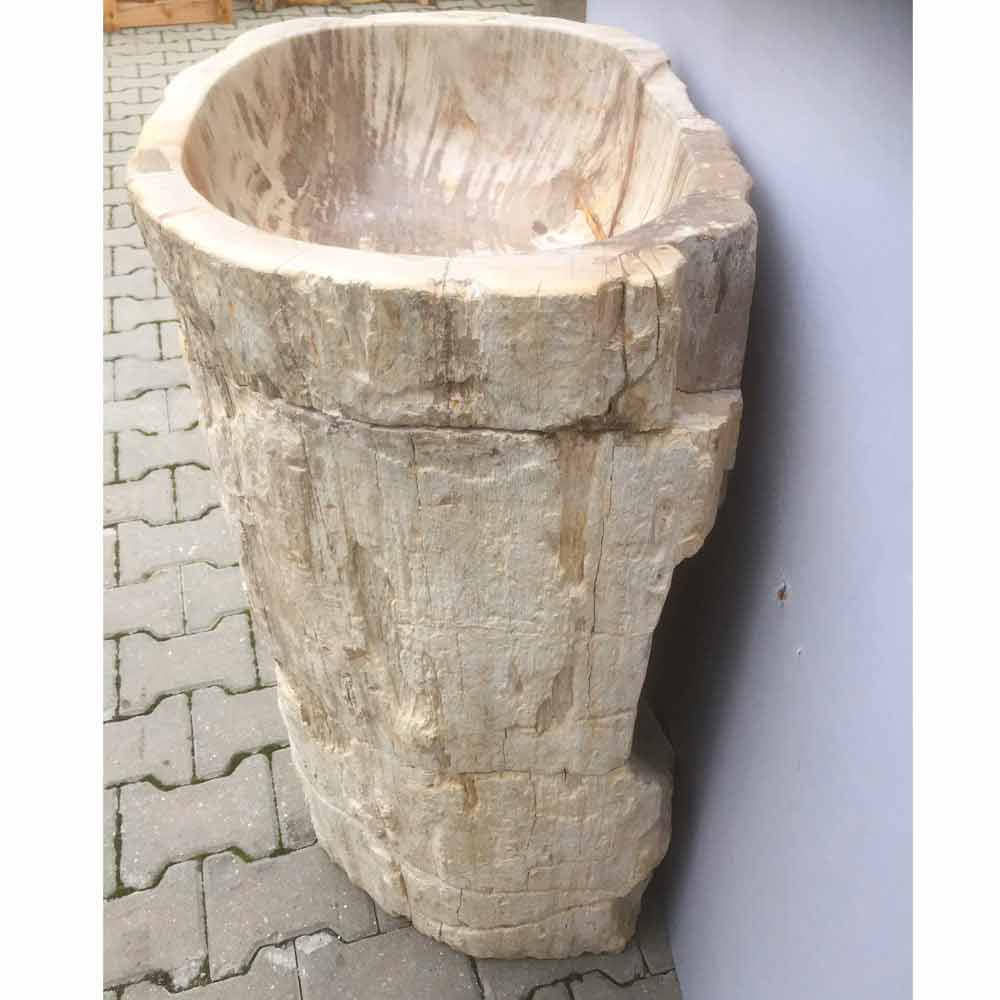 Chiuveta pe piedestal din lemn pietrificat, lucrata manual.