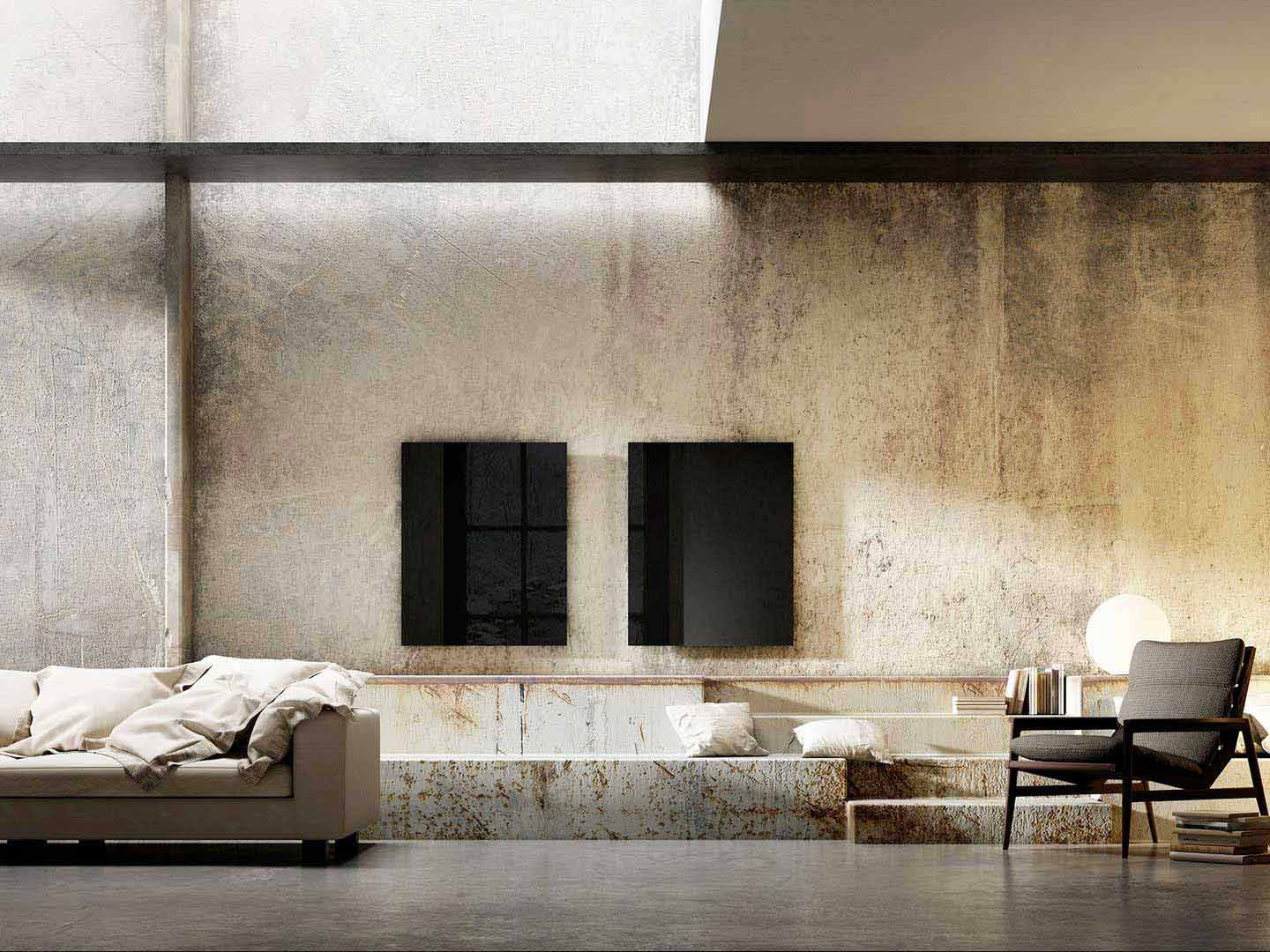 panouri radiante din sticla la putere de iradiere electrice și în infraroșu. Este soluția ideală pentru cei care doresc un sistem de încălzire elegant și eficient. E „este format din două foi de sticlă laminate împreună, dintre care unul este echipat cu o suprafață care poate fi stimulat electric. Prin aplicarea unei tensiuni electrice, depozitul de suprafață din sticlă transformă energia în căldură, care este emisă sub formă de raze infraroșii la lungime de unda. Sistemul de fixare pe perete este integrat în partea din spate a panoului și este complet invizibil din față.