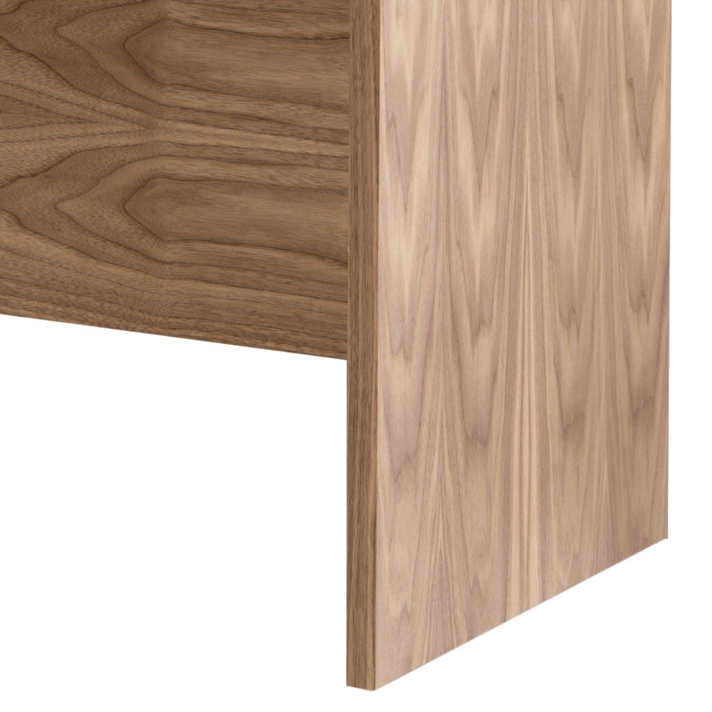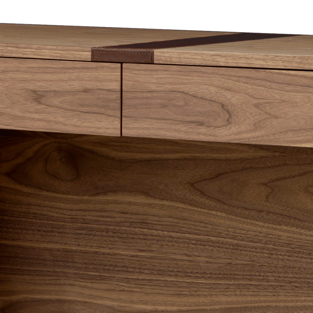 Fabricat din placaj curbat furniruit in nuc canaletto cu insertii frontale din piele naturala.