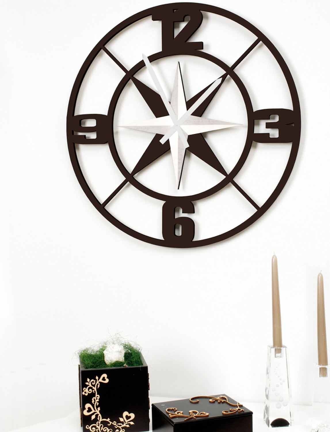 Ceas rotund mare, cu impact mare, datorită culorilor și detaliilor din care este confecționat, în întregime din lemn