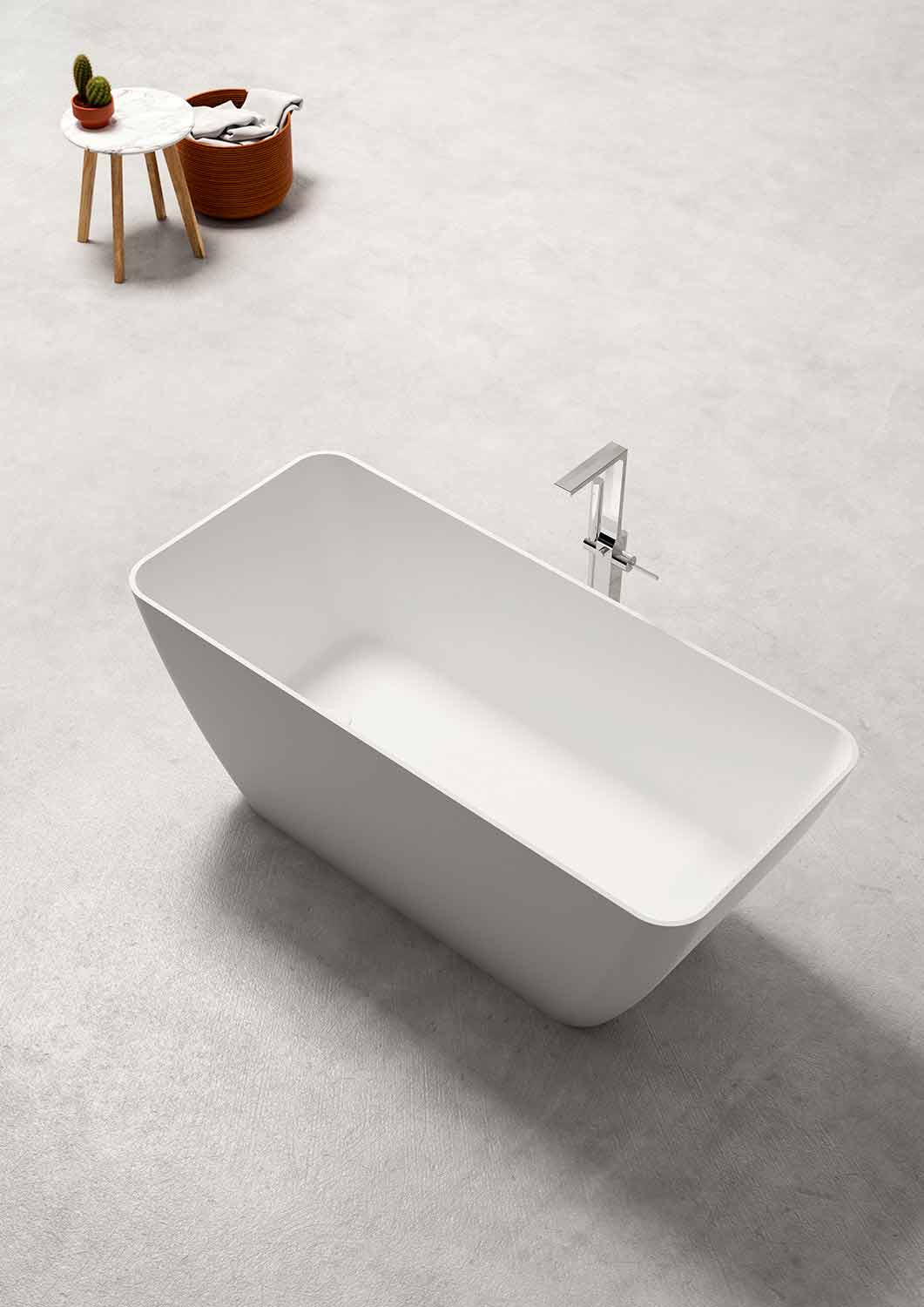 oferă designului o gamă nelimitată de posibilități tehnice și estetice . Pielea lui mătăsită și caldă, combinată cu aspectul său mineral și indicarea reflexiei luminii, îl fac un material capabil să transforme orice element în protagonistul băii.