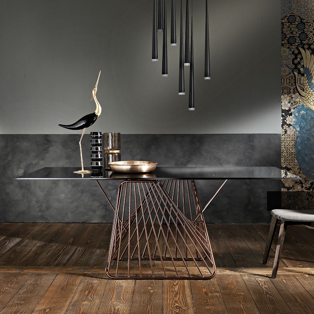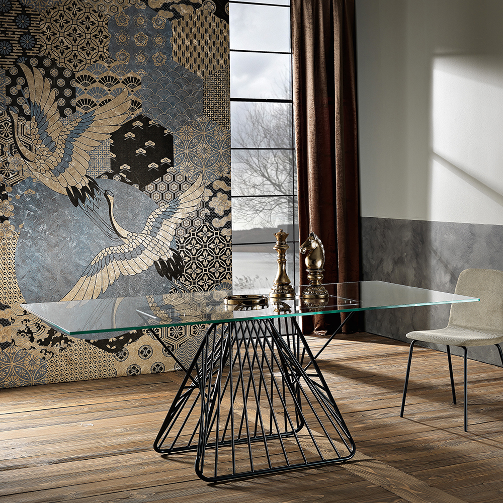 Mitia este o masă fixă uimitoare realizată în Italia cu o bază metalică pictată și o suprafață de sticlă călită (grosime de 12 mm).