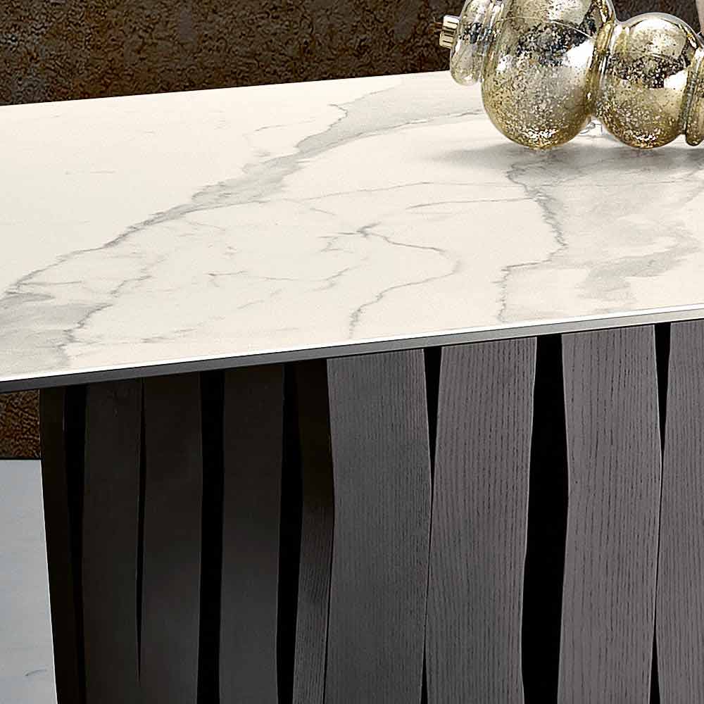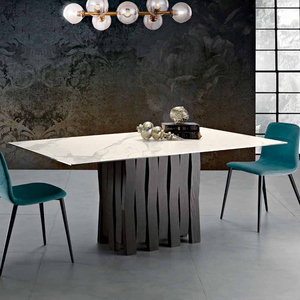 Egisto este o masă elegantă fixă realizată în Italia cu o suprafață sticlo -ceramică și o bază solidă din lemn de frasin.