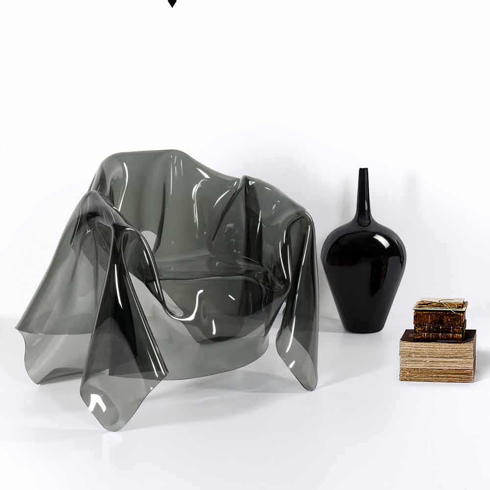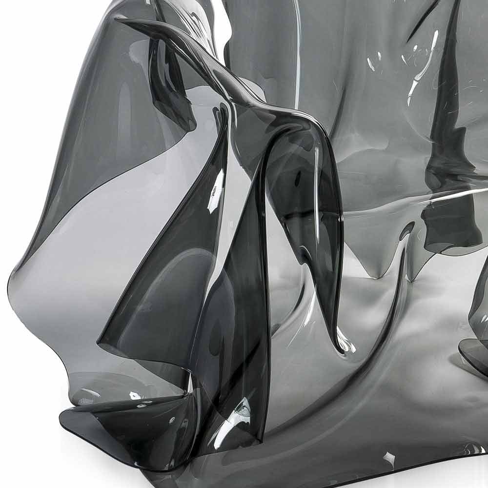 Scaunul Paris drapat este o piesă unică, o operă de artă modernă. Dintr-o foaie de pur virgin polimer 100% plexiglas PMMA de colorație fum drapată în întregime manual, se naște un scaun unic și irepetabil. Scaunul este complet autoportantă și poate găzdui 1 persoană. Caracteristicile fizice și tehnice ale plexiglas (șoc, rezistent la stres, durabil, termoizolator) fac din acest articol o completare de mobilier practic și funcțional, potrivit pentru orice mediu. Luminozitatea și luminozitatea rămân constante și neschimbate în timp. PMMA plexiglass din polimer virgin este utilizat de non-toxic, hipoalergenic, inodor și antibacterian. Recyclable 100%. Concepută, proiectate și realizate în Italia, cu materiale italiene.