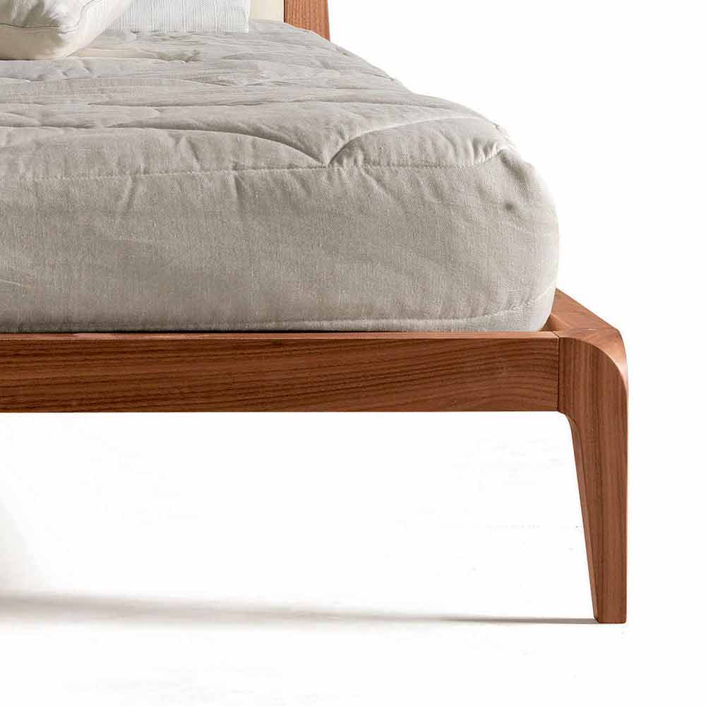 Materialele de calitate i realizarea made in Italy sunt principalele elemente care caracterizează patul dublu Menardo. Patul este realizat din lemn masiv în ceea ce privește capul și picioarele, șarpantele, având în vedere lungimea lor de peste doi metri pentru a preveni ruperea, sunt realizate din blockboard (lemn masiv îmbinat, dar de dimensiuni mai mici), care sunt apoi acoperite cu un furnir de nuc. Finisajul special în ulei aduce mai multe avantaje. Comparativ cu lacurile tradiționale, produsele pe bază de ulei natural de in pun în valoare granulația și caracteristicile lemnului. Atunci când intră în contact cu fibra lemnoasă, acestea se cristalizează, ocupând porii fibrei lemnoase și creând simultan o bariere la absorbția lichidelor (adică murdăria) și crescând rezistența mecanică a fibrei lemnoase. Acest ulei este, de asemenea, hidrofug și rezistent la intemperii și la radiațiile UV. Prin urmare, este o alternativă care nu este doar natural și ecologică, ci aduce și îmbunătățiri considerabile.