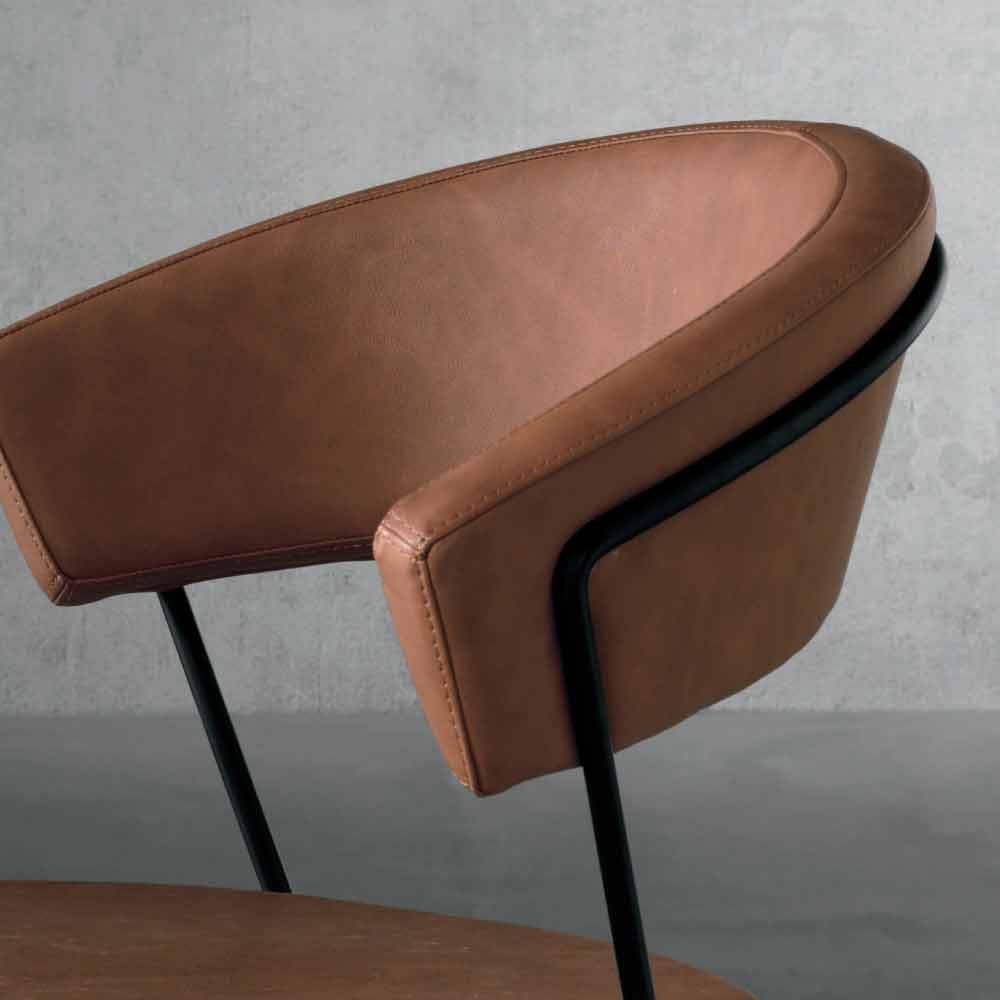 Producată în întregime în Italia cu o structură metalică neagră opacă și un scaun în țesături colorate în tabac.