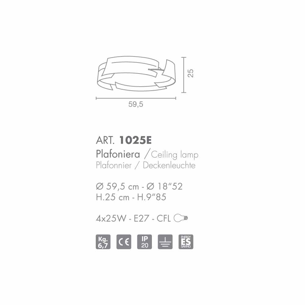Design Selene Vultur plafon Ø59,5 H 25 cm Made in Italy