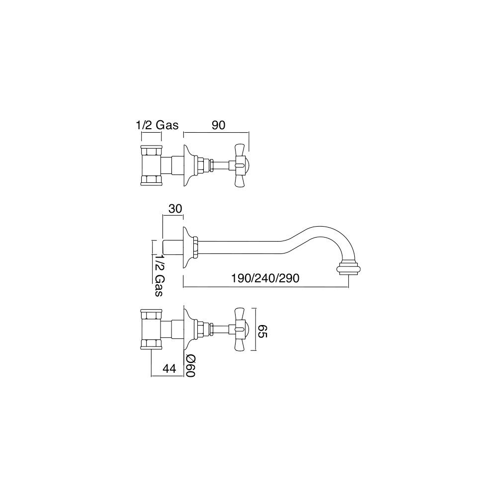 robinet de perete pentru chiuvetă sau lavoar, realizat din alamă.