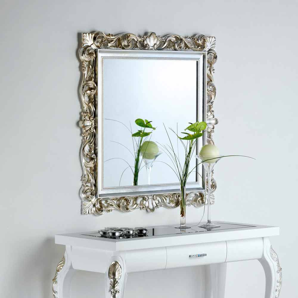 Oglinda Marsy se caracterizează printr - o măiestrie realizată folosind materiale de înaltă calitate și folosind experiența artizani italieni calificați. Cadrul este realizat din lemn decorate cu sculpturi. finisaj de frunze de argint. sticlă oglindă, 4mm grosime. Made in Italy.