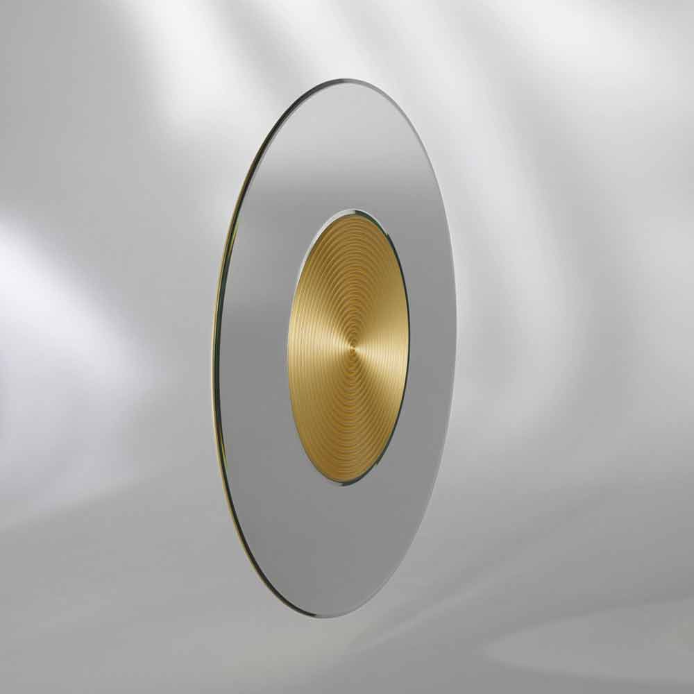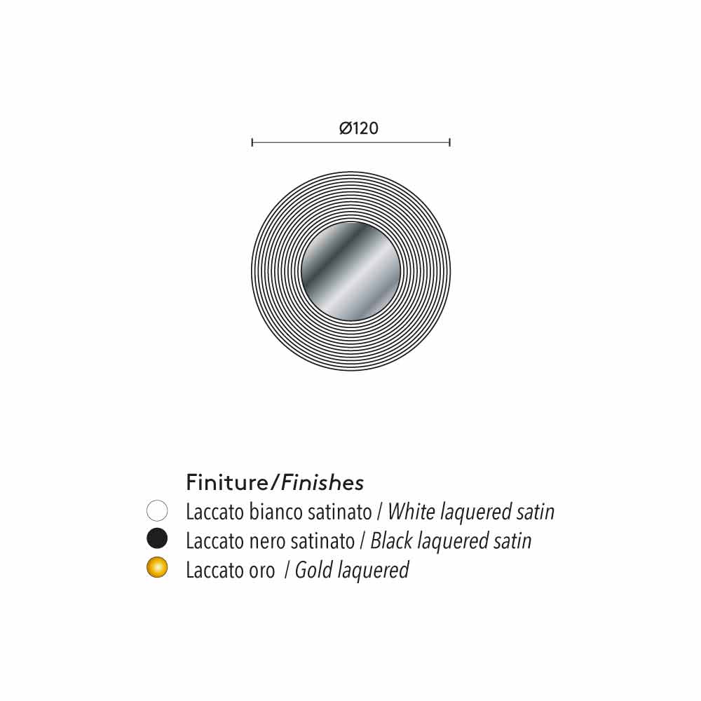 design, cu suport din MDF lăcuit aur oglindă, satin alb sau satin negru. Oglindă exterioară, decorațiuni interioare.