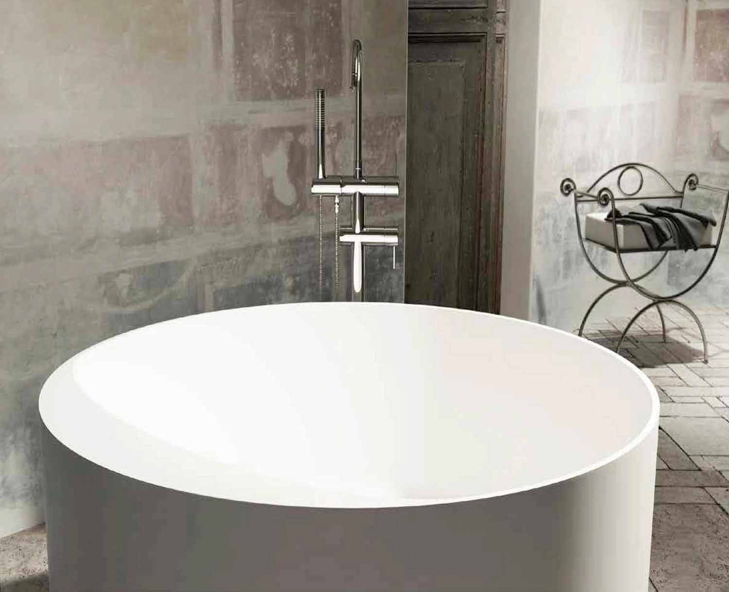 Cremona este o cadă rotundă în picioare, ideală pentru mobilier modern. Un accesoriu de mobilier cu linii moi și luminoase și un design curat, minimalist, caracterizat printr-un design circular și cu o margine laterală mai frecvent contrastează cu rotunjimea pereților subțiri ai restului bazinului. Cu volumul său minim invaziv se potrivește perfect în baia dvs.