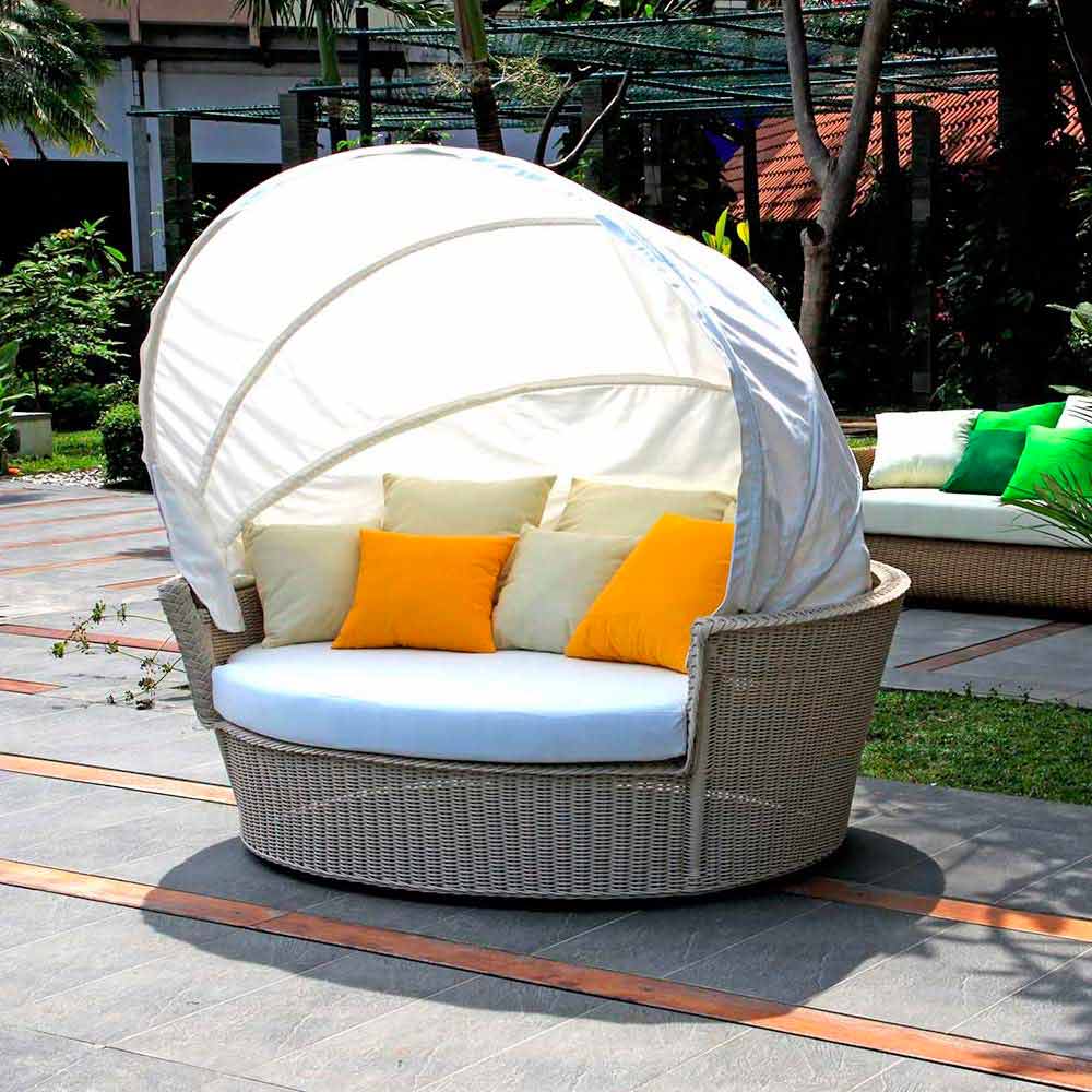 Hector este o frumoasă insulă canapea din exterior, de forma care seamănă cu un coș, cu un design modern și original, complet manual.
