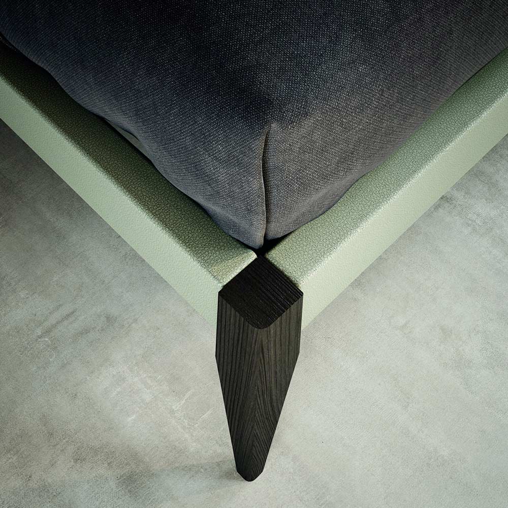 echilibru vizual perfect între volumele abundente ale tăbliei, îmbogățite de cusăturile centrale speciale și liniile sobre și esențiale ale cadrului patului. Elementele care îl înconjoară sunt combinate cu acesta, creând o