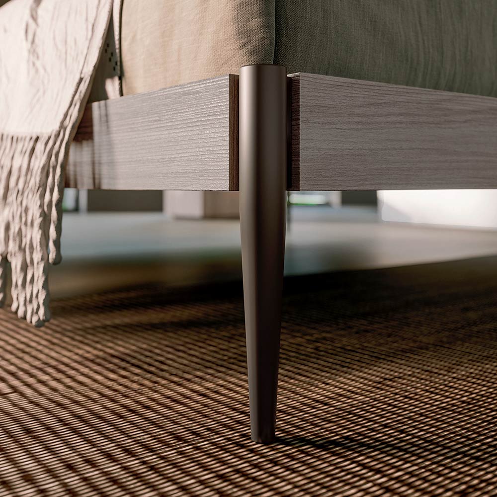 cadru de pat din lemn cu finisaj de material oxidat și picioare din