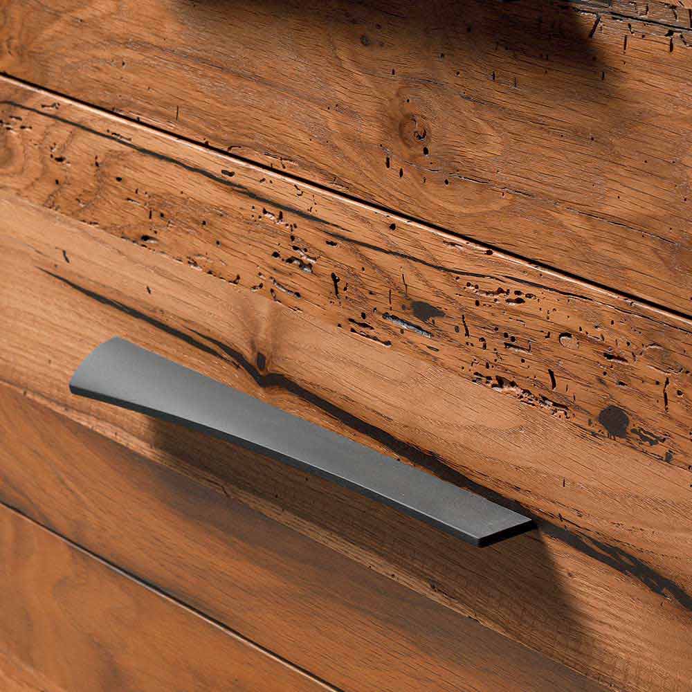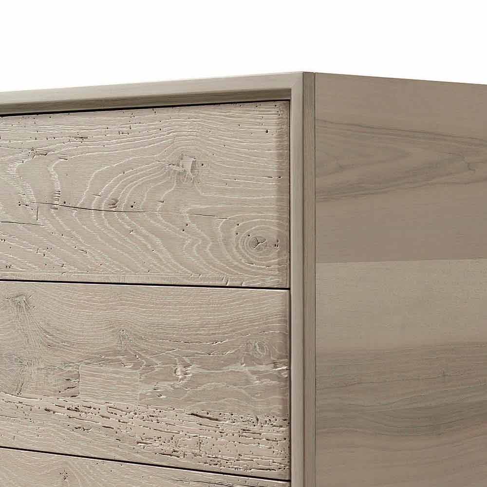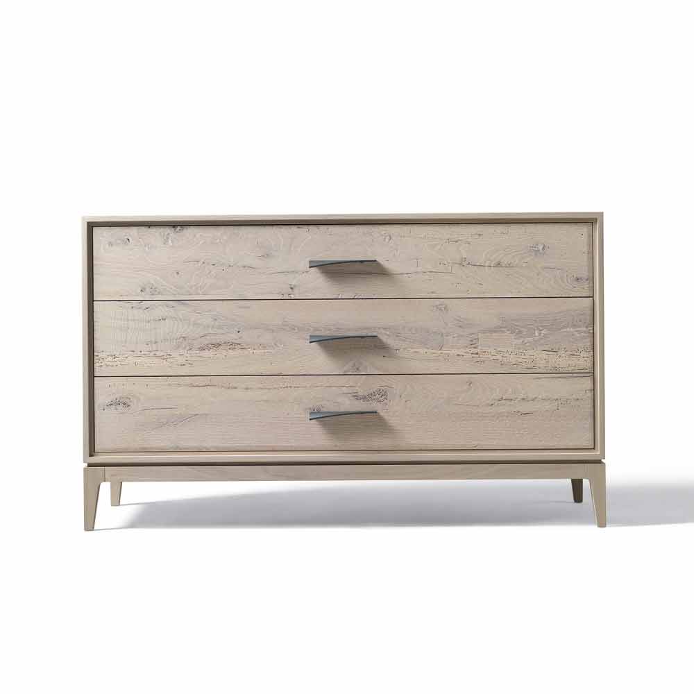 In detaliu, aspectul natural al dresser 3 sertare. Finisajul ulei precis, care îmbunătățește fibra lemnului, este rezultatul măiestrie realizate manual. Forma specială a mânerului adaugă o notă de caracter și personalitate mobilier.
