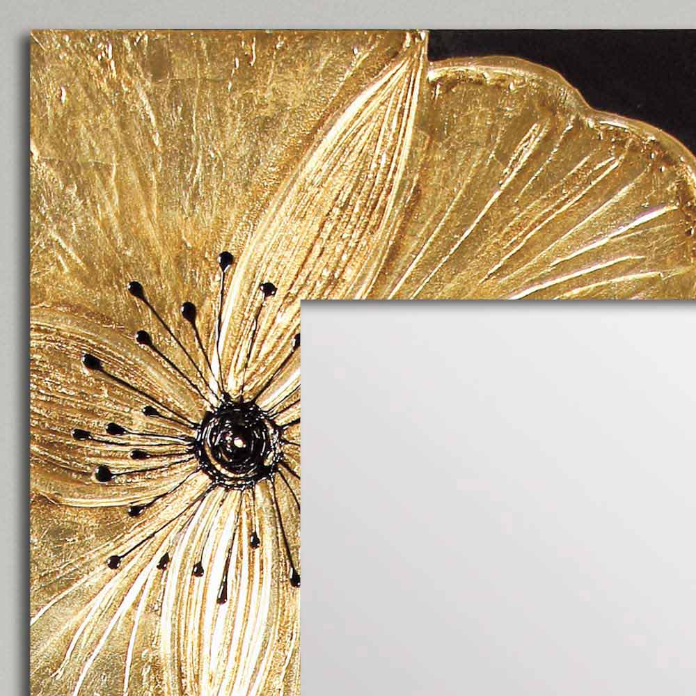 Structura dublă decorată manual, cu detalii de rășină pe materialul ridicat, frunze de aur și argint, oglindă cu canelură, postare orizontală / verticală, finisaj lucios.