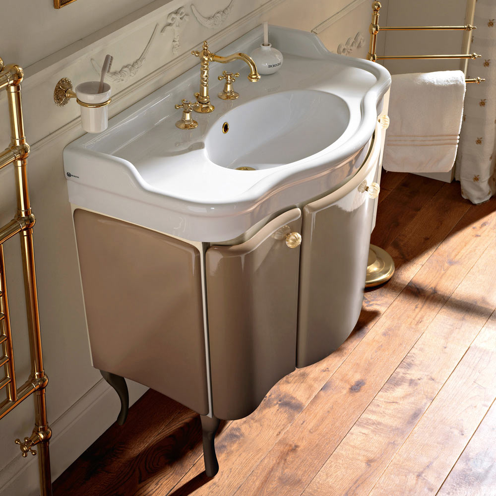 Dulap de baie bicolor cu chiuveta din ceramica Made in Italy