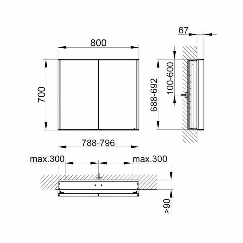 iluminării cu LED-uri, care este ușor de reglat și reglabil prin comutatorul senzorului electronic, creând astfel atmosfere unice în cameră. Odată deschise, cele 2 uși se rotesc în jurul benzilor de lumină, permițând astfel obținerea unei iluminări optime atât la închidere, cât și la deschidere.