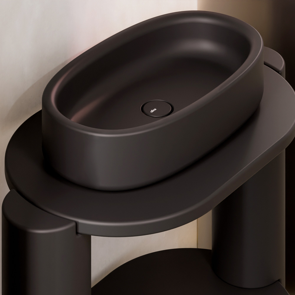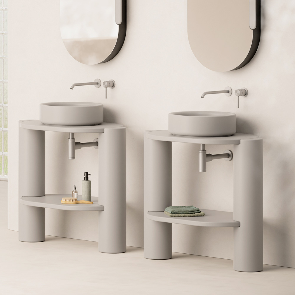 Această structură ceramică se remarcă prin designul său original, cu coloane cilindrice și rafturi integrate , creând un echilibru perfect între estetică și funcționalitate.