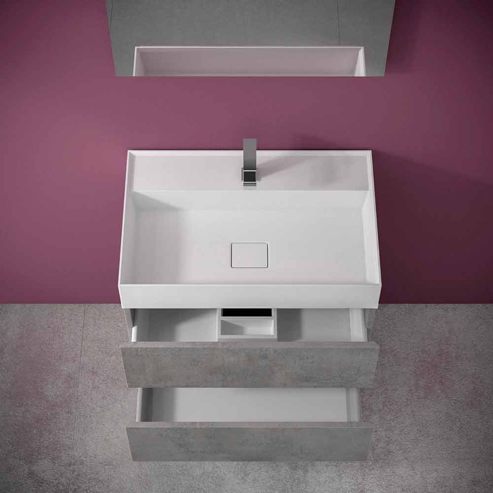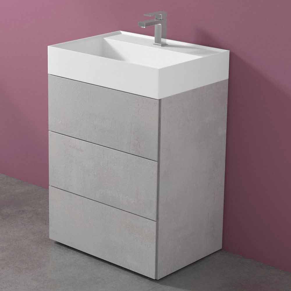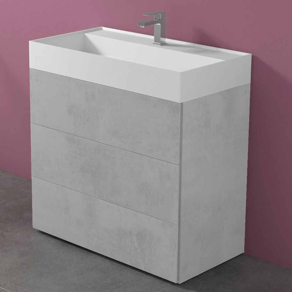 Mobilier de baie cu chiuvetă, design modern în laminat cu 3 sertare în diferite culori și dimensiuni, fabricat în Italia.