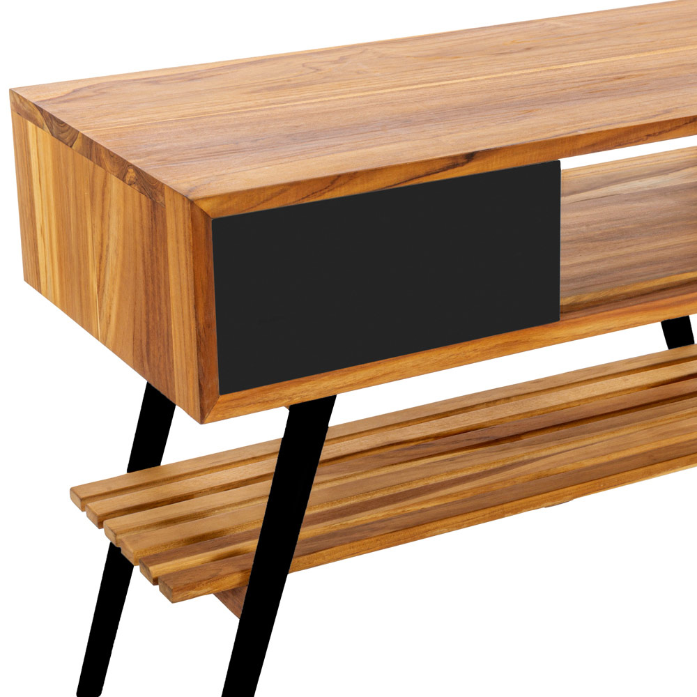 Dulap de baie din lemn de tec natural recuperat cu sertar din mahon negru mat.