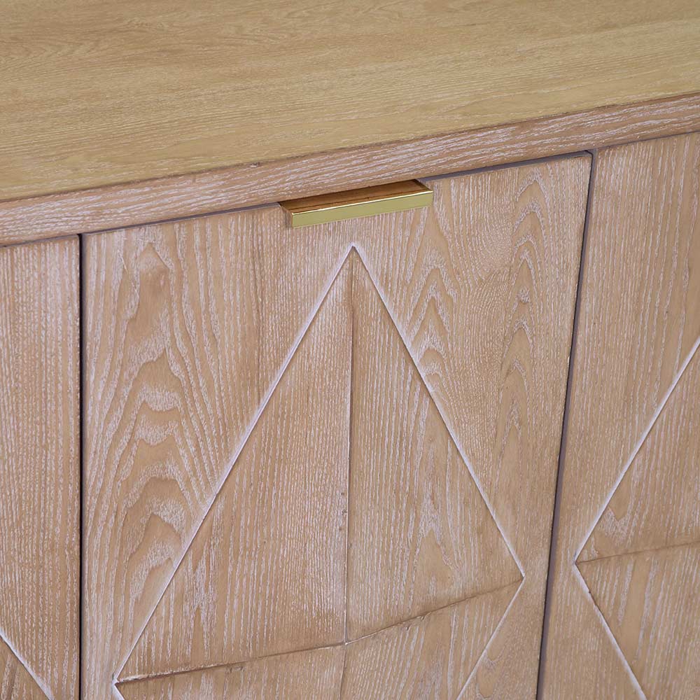 Picioarele de lemn de brad conferă dulapului o structură solidă, îmbogățită de un design curat și contemporan. Ușile, împodobite cu un model geometric gravat, adaugă o notă de originalitate și rafinament.