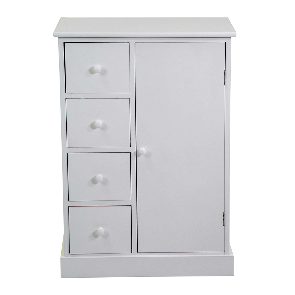 Cu 4 sertare laterale și 1 ușă , acesta oferă o soluție mare de depozitare, perfectă pentru depozitarea obiectelor de zi cu zi, ustensilelor, textilelor sau documentelor, păstrând totul ordonat și ferit de vedere. Liniile curate și designul minimalist îl fac extrem de versatil : perfect pentru livinguri, dormitoare, băi sau intrări.