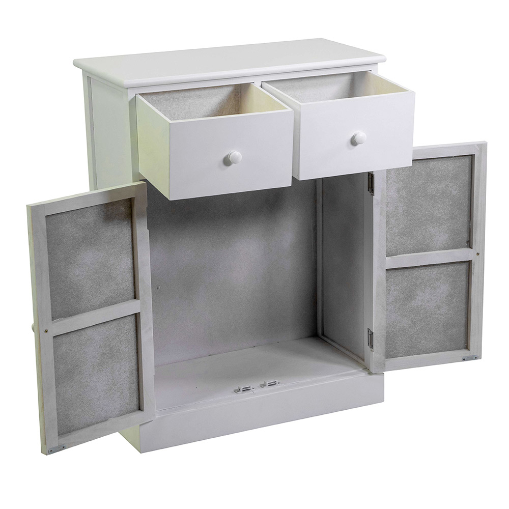 Cu două sertare superioare și două uși inferioare , acesta oferă o soluție mare de depozitare perfectă pentru depozitarea obiectelor de zi cu zi, ustensilelor, textilelor sau documentelor, păstrând totul ordonat și ferit de vedere. Liniile curate și designul minimalist îl fac extrem de versatil : perfect pentru livinguri, dormitoare, băi sau intrări.