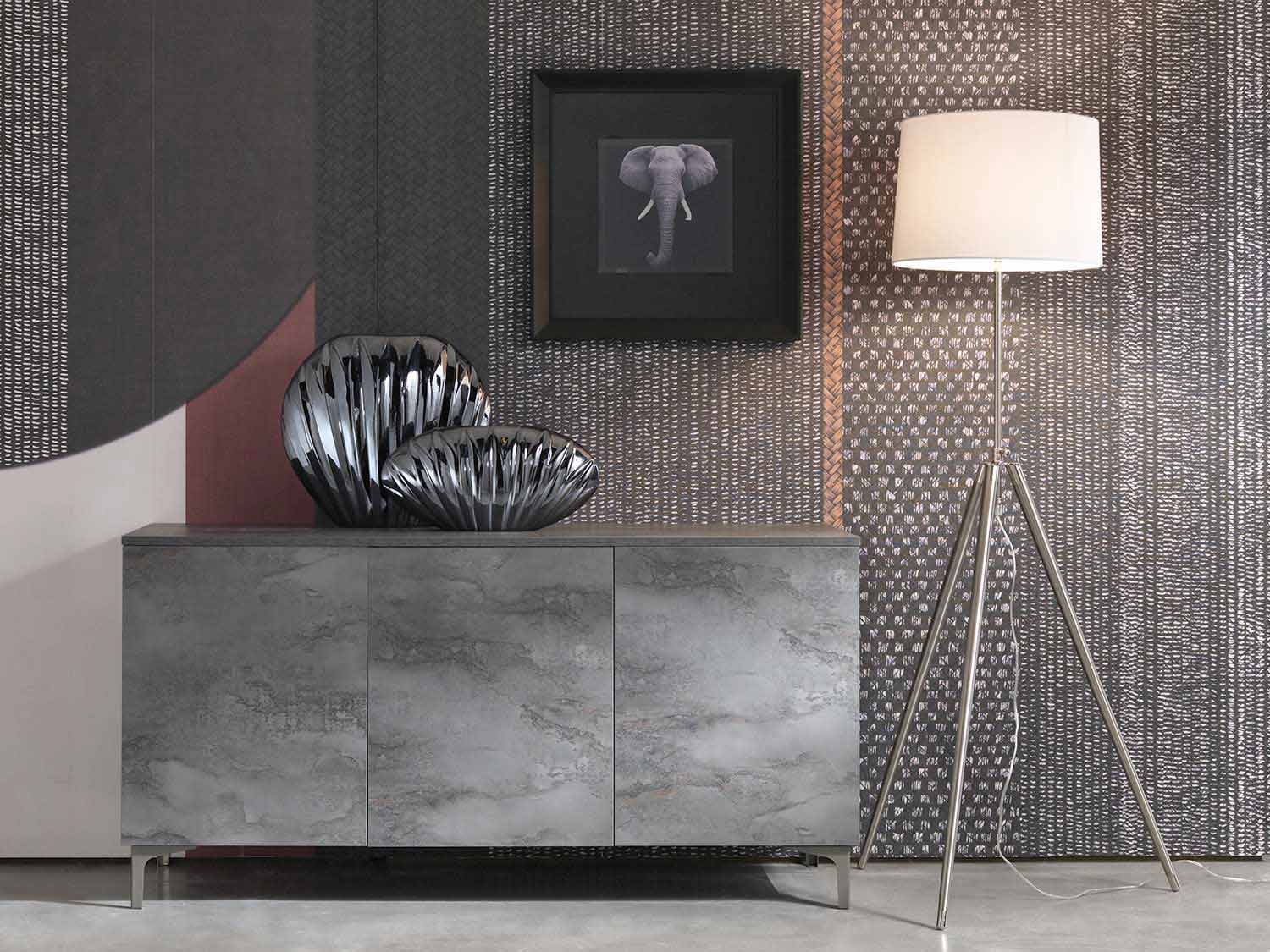 Dulap de sufragerie cu trei uși, design modern cu bronz sau lemn melaminat gri realizat în Italia.