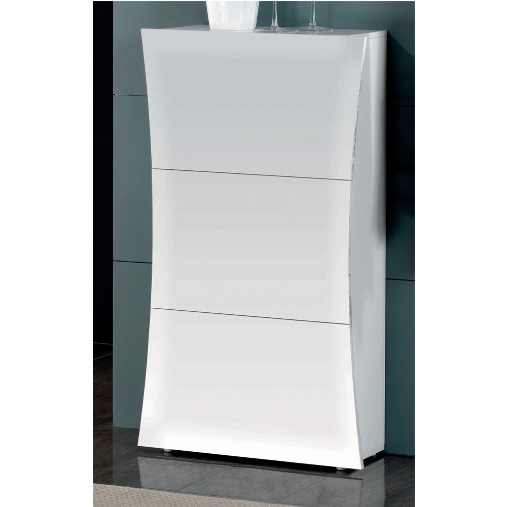 Dulap de pantofi coloană modern alb din lemn de design arcuit cu 3 uși, fabricat în Italia.