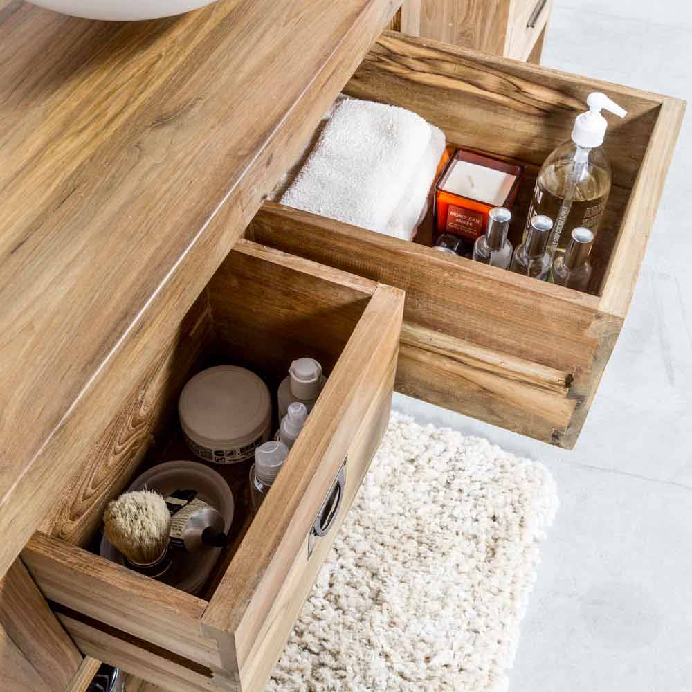 Dulap baie modern din lemn de tec finisaj natural cu 2 sertare.