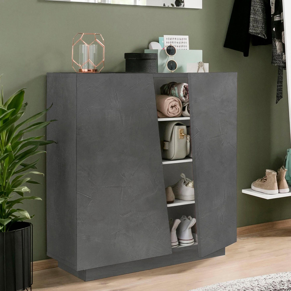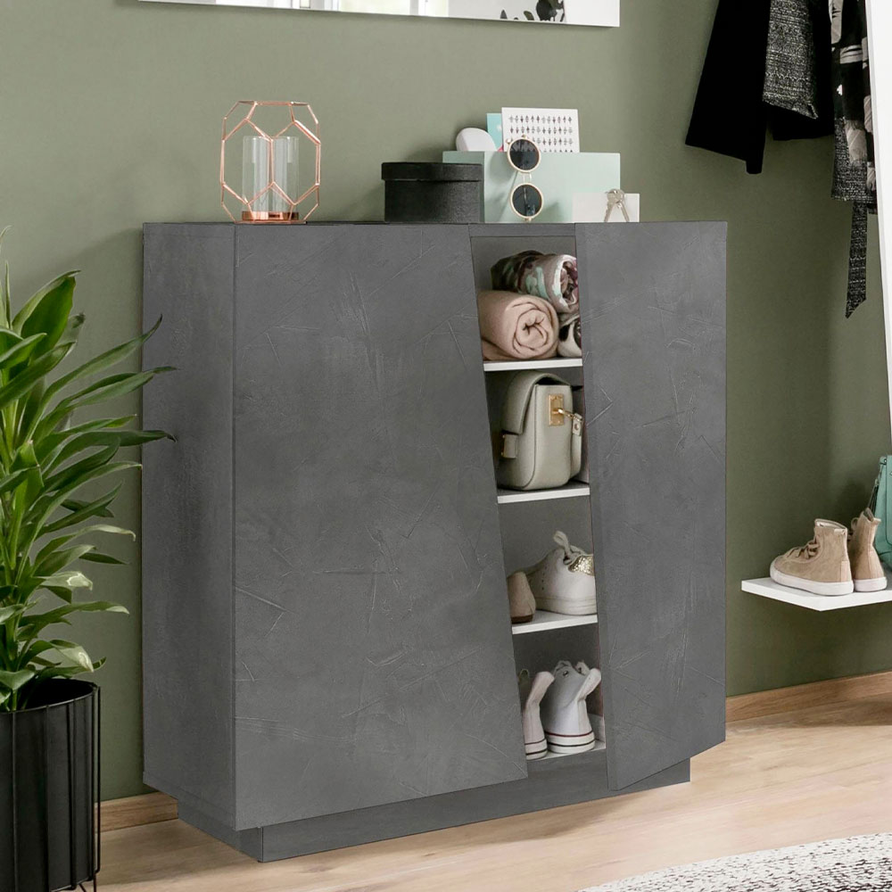 Dulap pentru încălțăminte din lemn melaminat sustenabil cu 2 uși și 2 finisaje, fabricat în Italia.