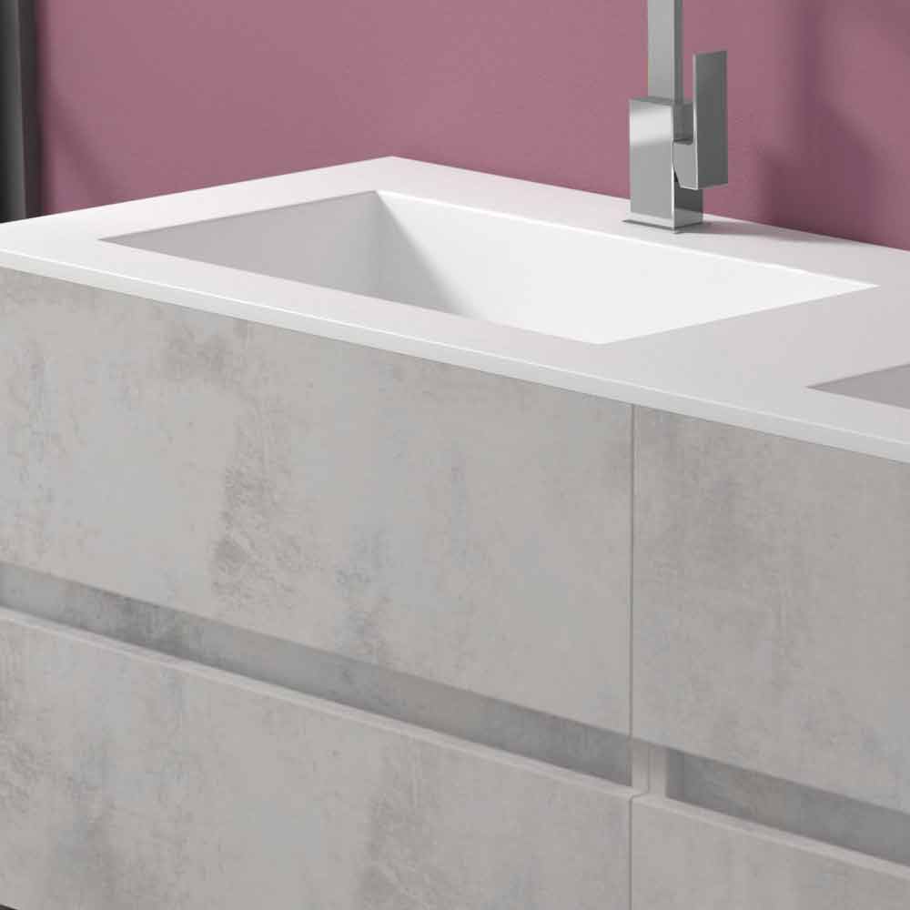 Chiuvetei dreptunghiular dublu integrat este fabricat din material mat Solid, o rășină opacă mineral alb, și finisate în gelcoat opace, ceea ce face ca produsul impermeabil.