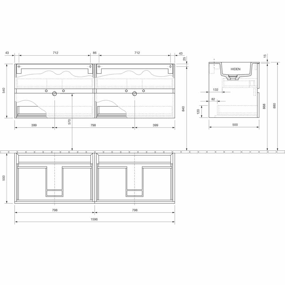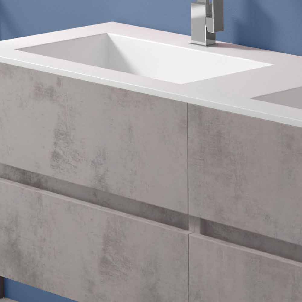 Dulapul este compus din două baze pentru chiuvetă cu sertar standard și 1 sertar în formă realizată din fibră de lemn laminată hidro W 100 și hidrofugă , pentru a asigura o durabilitate mai mare și a preveni deteriorarea dulapului în contact cu apa. .