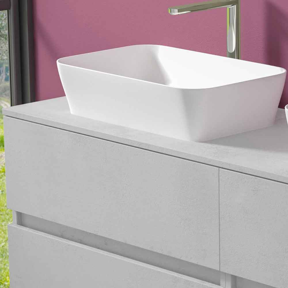Cele două chiuvetele blatul dreptunghiulare sunt realizate din mat Solid, o rășină opacă mineral alb, și finisate în gelcoat opace, ceea ce face ca produsul impermeabil.