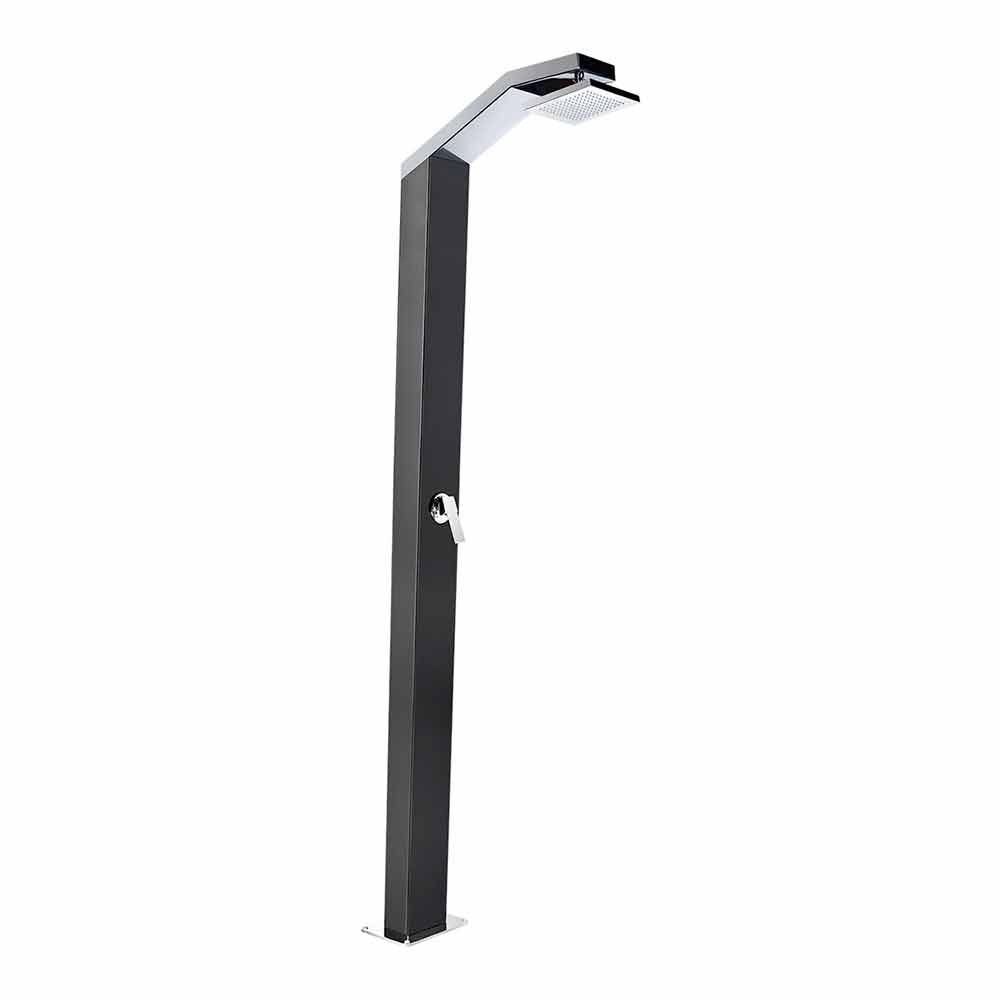 Duș solar de grădină din oțel inoxidabil vopsit în negru, fabricat în Italia.