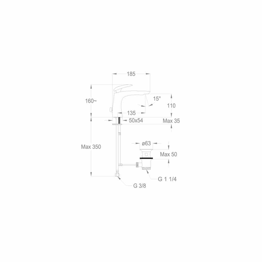 alamă de calitate superioară, are o înălțime de 160 mm și o distanță centrală de 135 mm și este