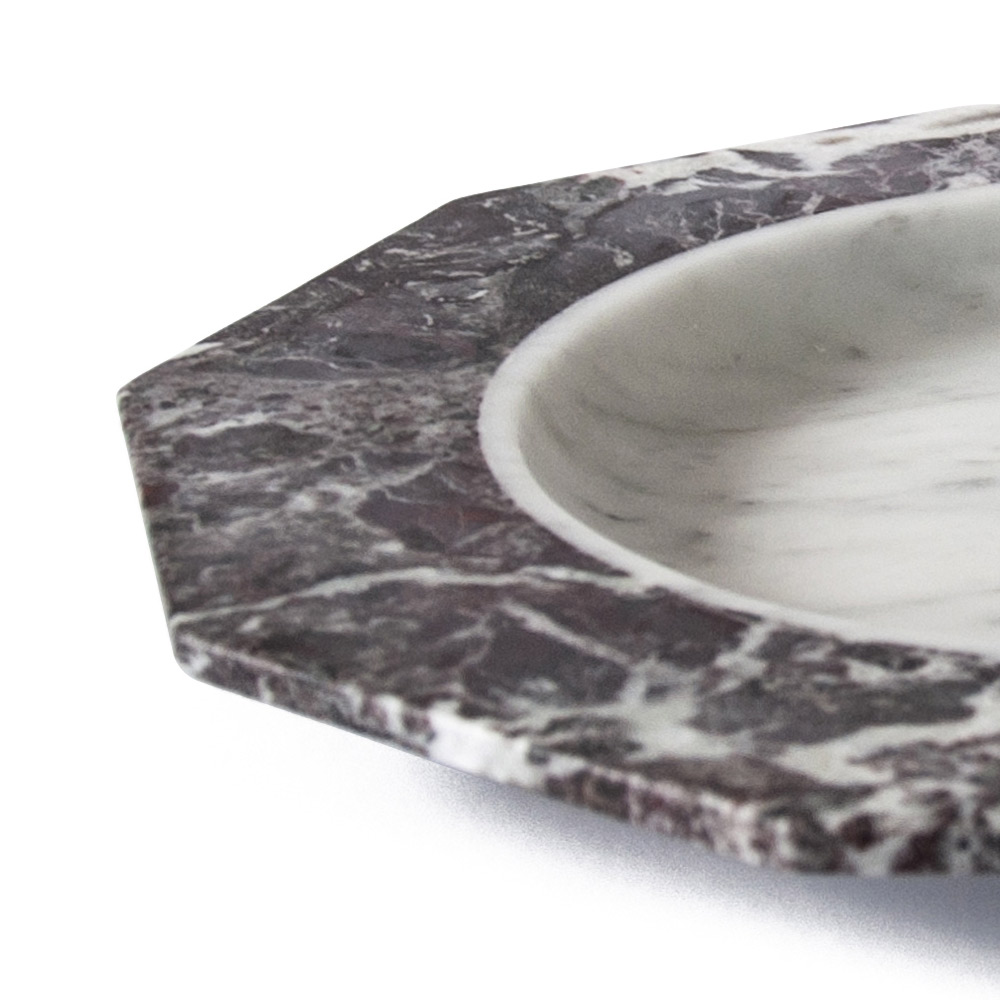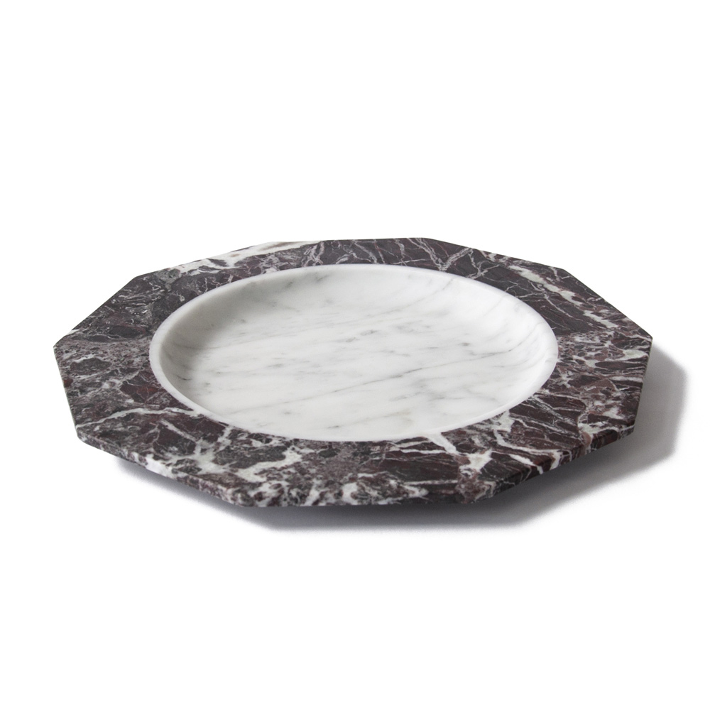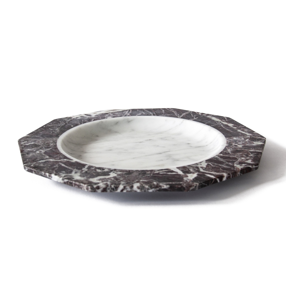 Farfurie satinata din marmura Levanto alba, neagra sau alba si rosie fabricata in Italia.