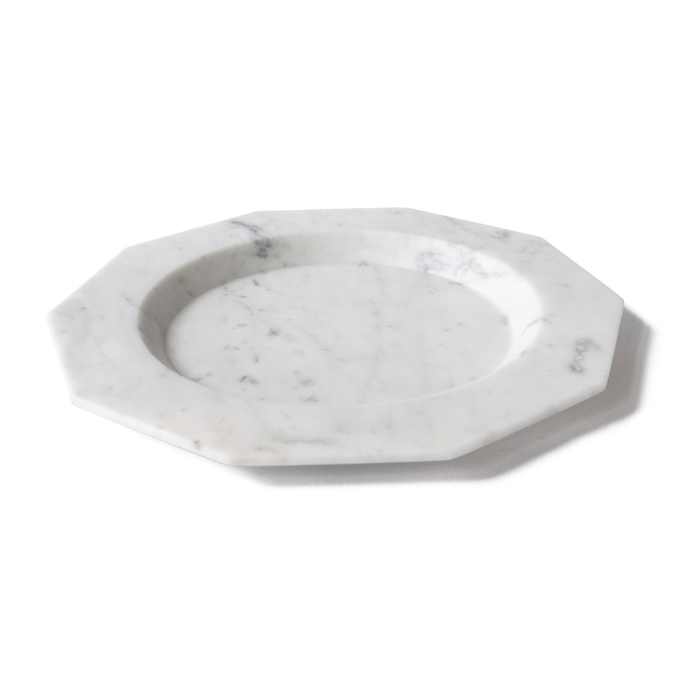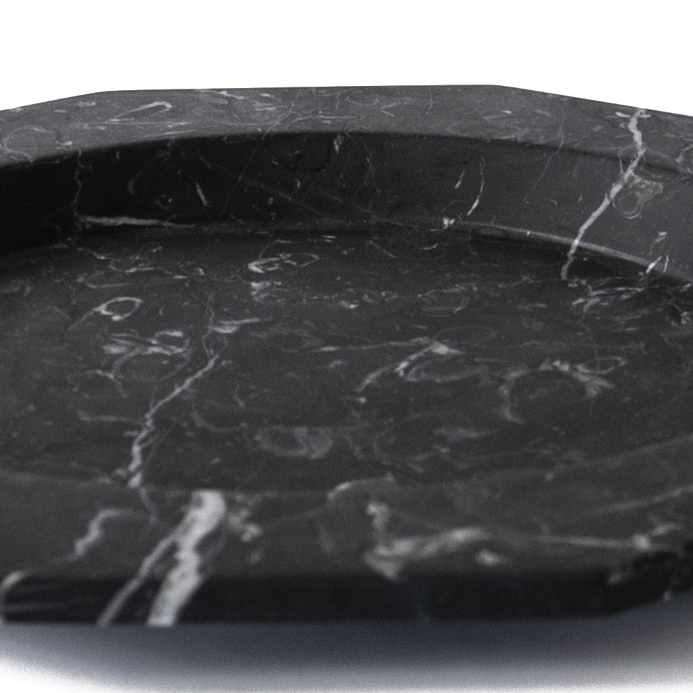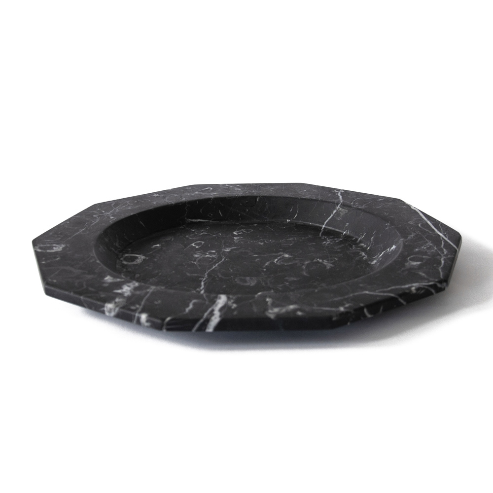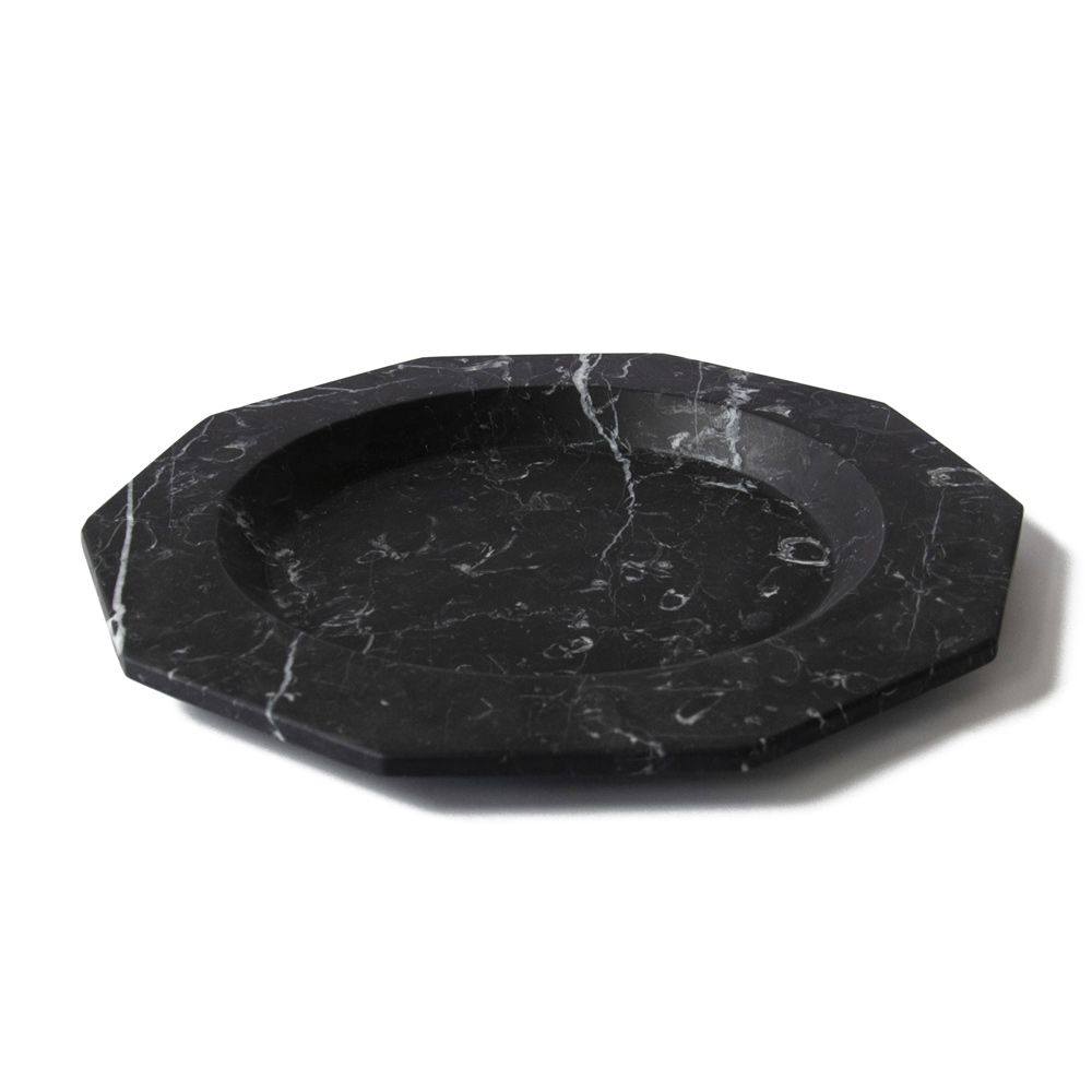Farfurie satinata din marmura Levanto alba, neagra sau alba si rosie fabricata in Italia.