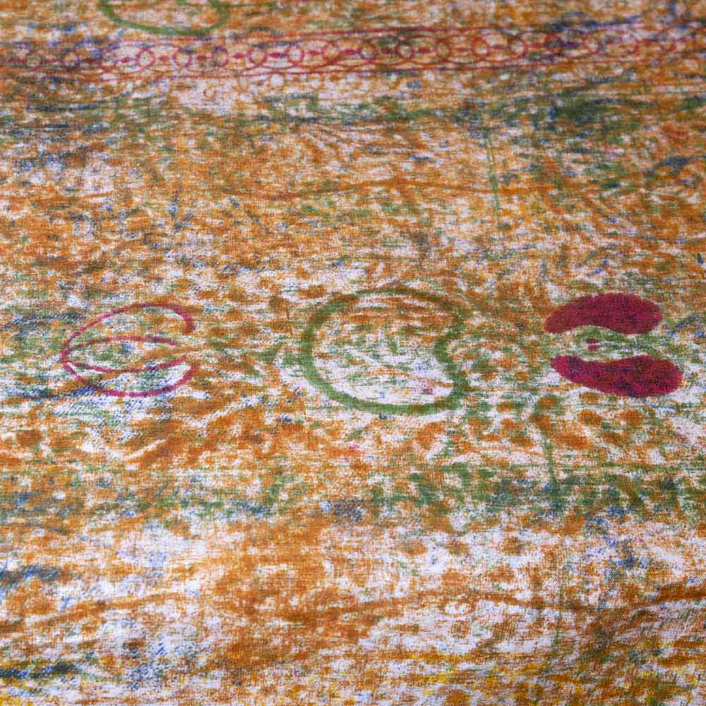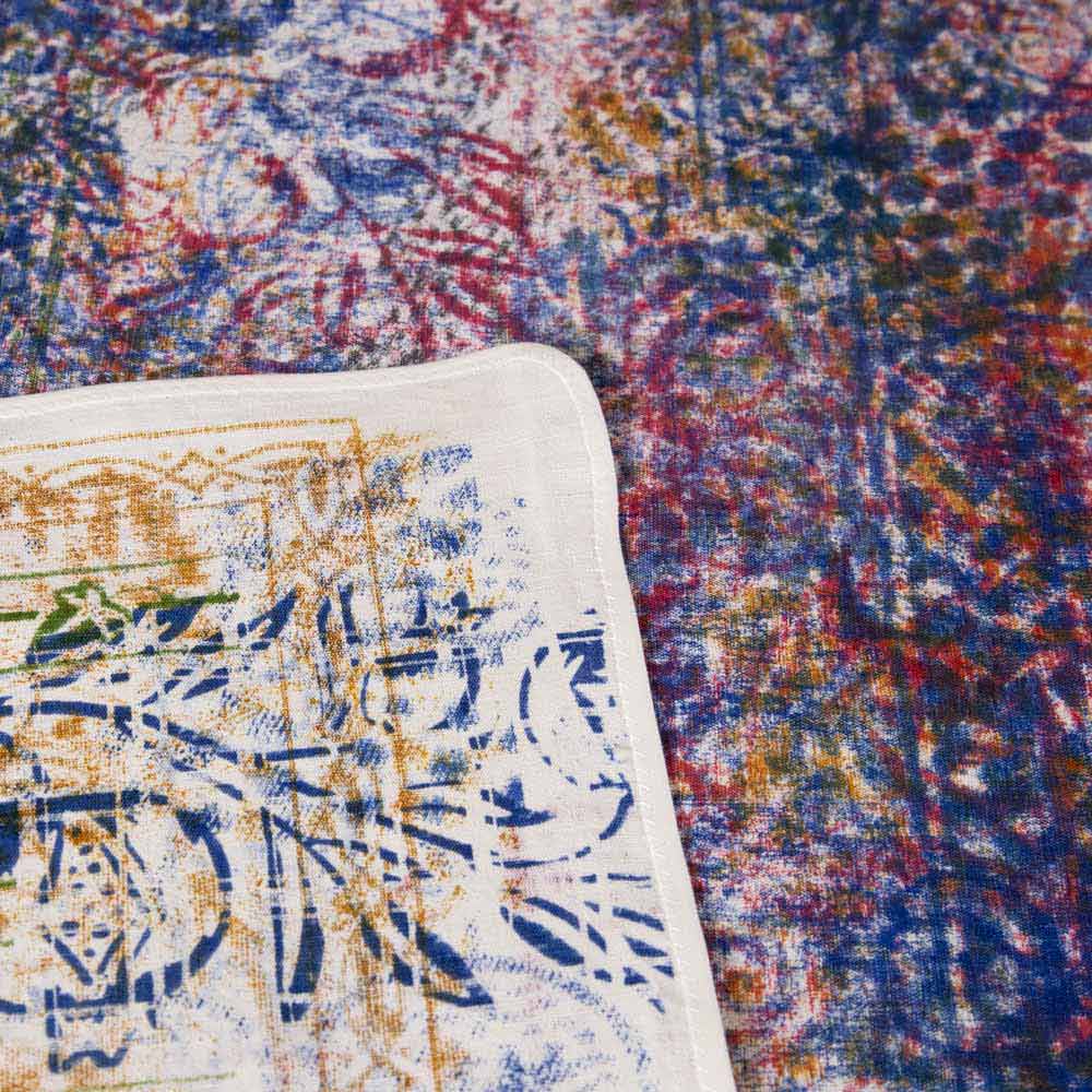 În timpul fazelor de tipărire, culoarea este transferată parțial și în această țesătură de bază care, lună după lună, se transformă într-o operă de artă „involuntară”, dar plină de culoare și farmec.