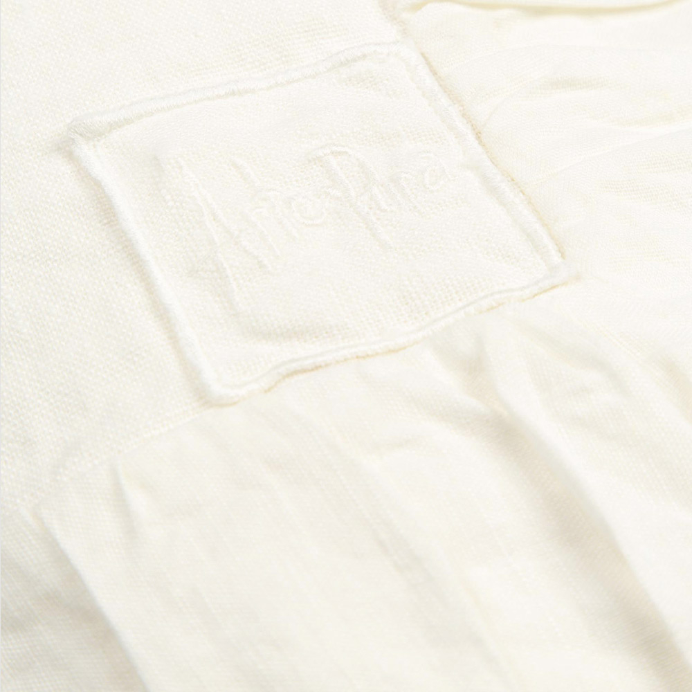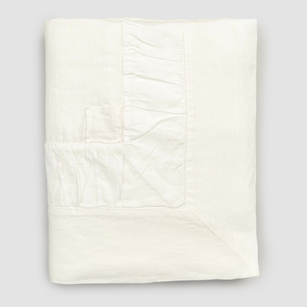 Fata de masa dreptunghiulara din in alb cu relief si margine pliata, fabricata in Italia.