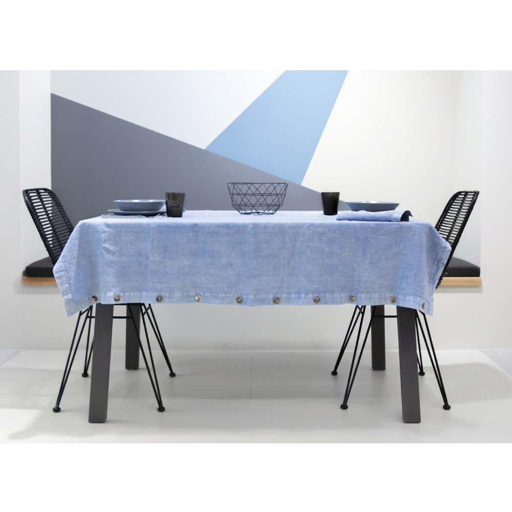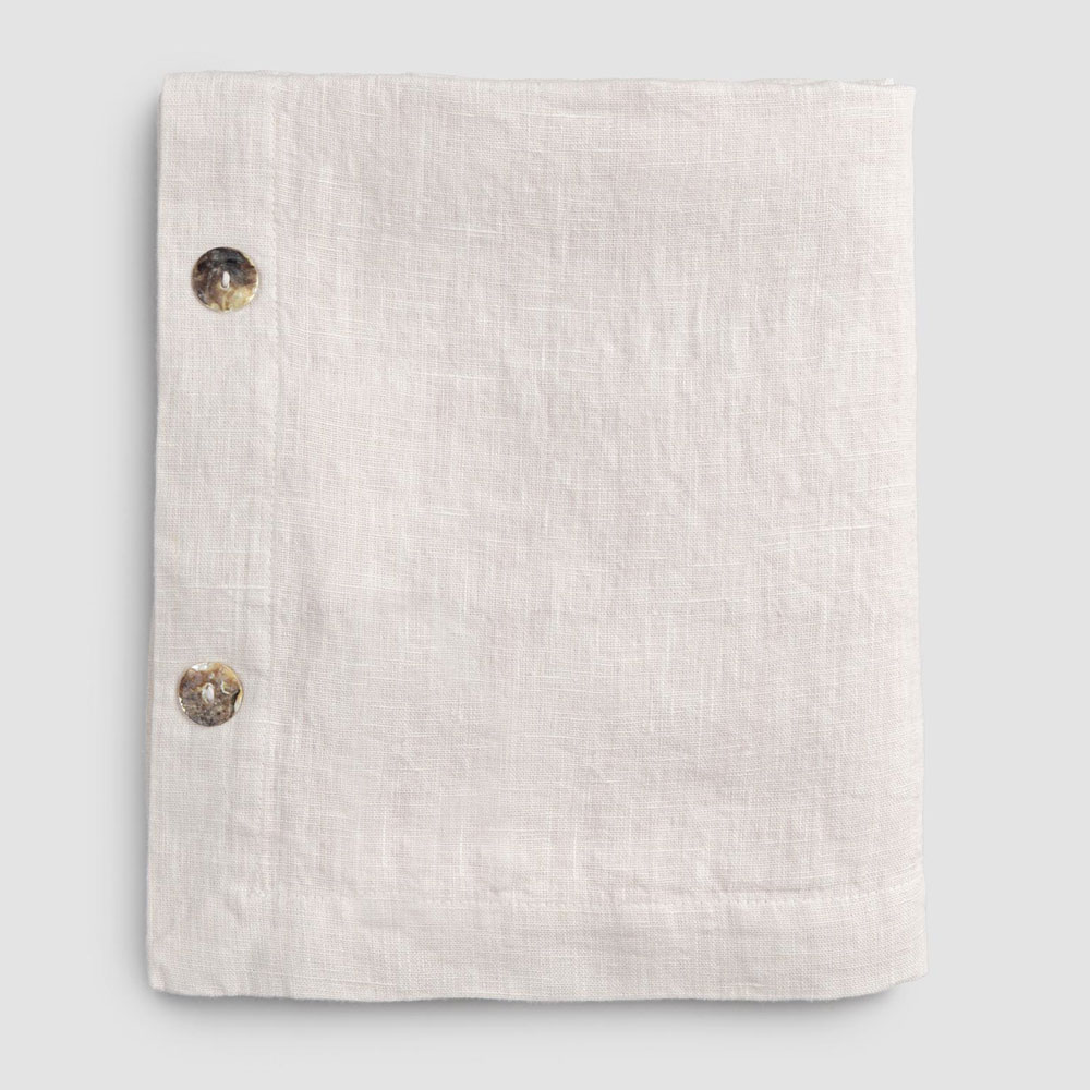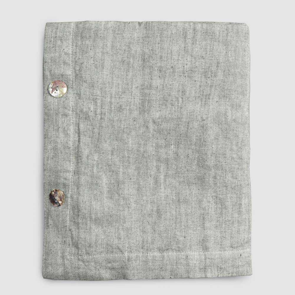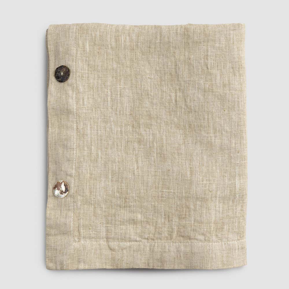 Fata de masa dreptunghiulara modulara din in, cu nasturi sidefati, de calitate realizata manual fabricata in Italia.