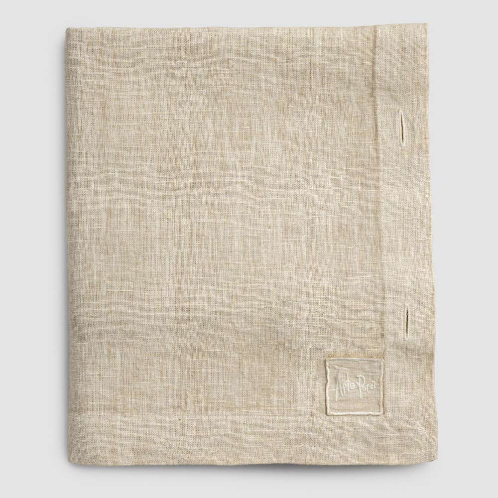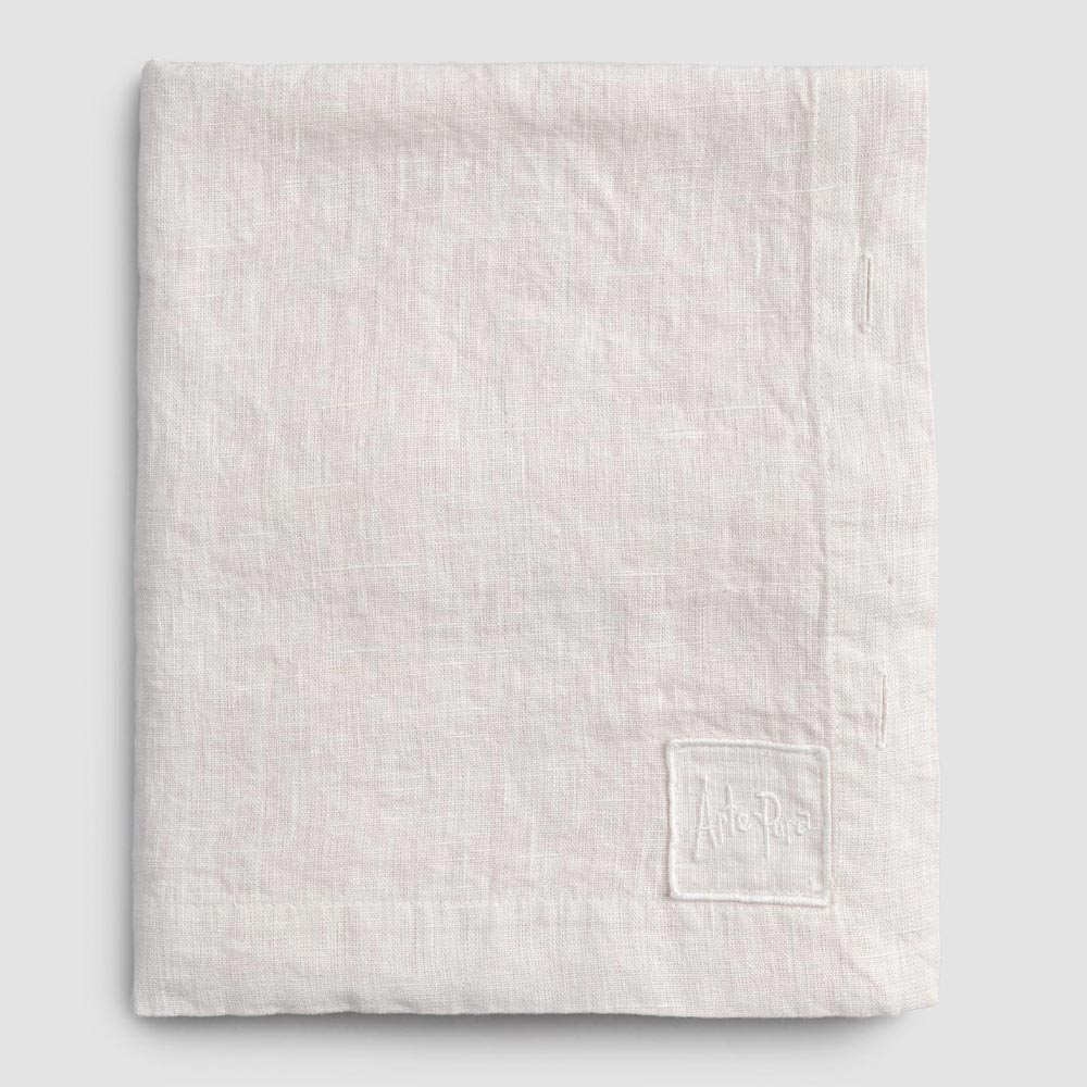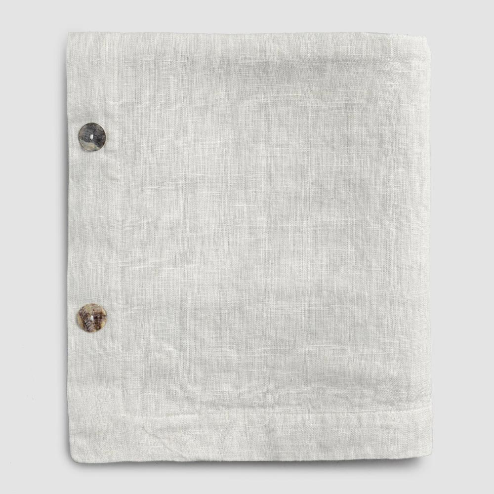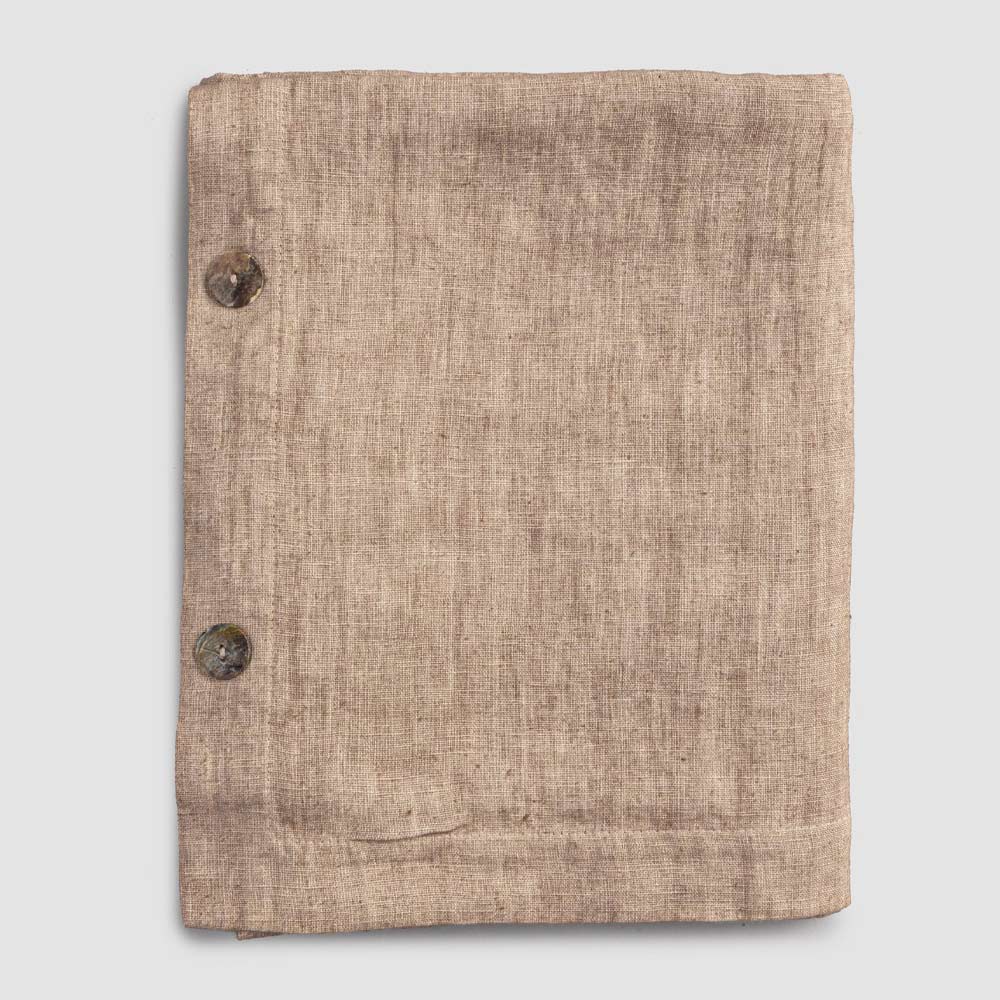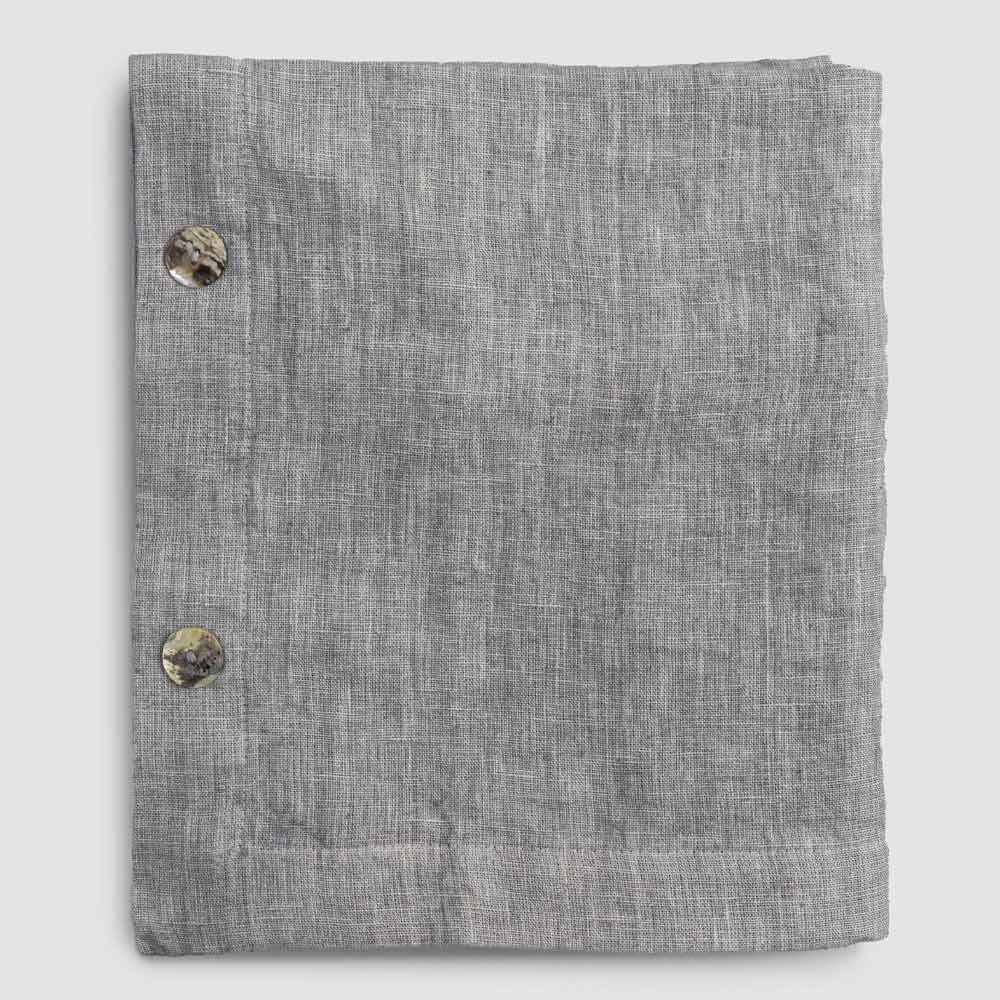 Fata de masa dreptunghiulara modulara din in, cu nasturi sidefati, de calitate realizata manual fabricata in Italia.