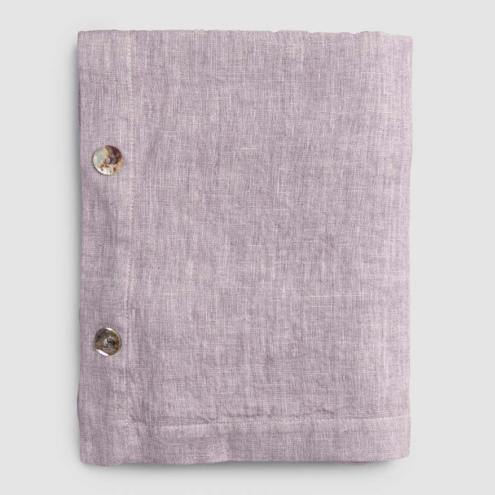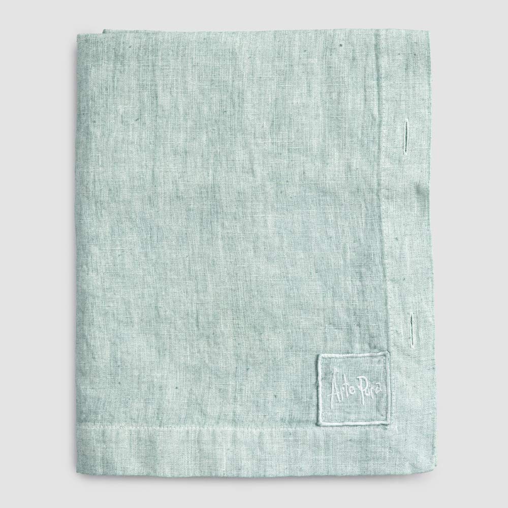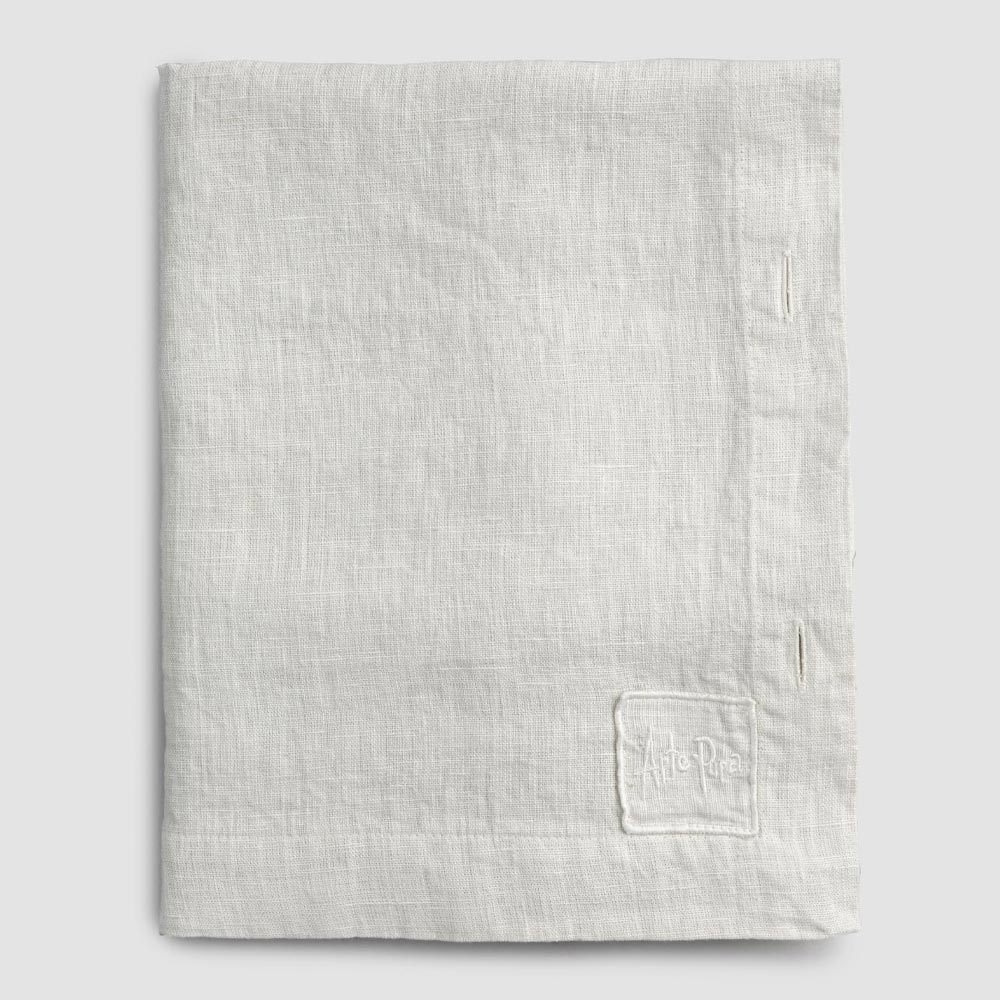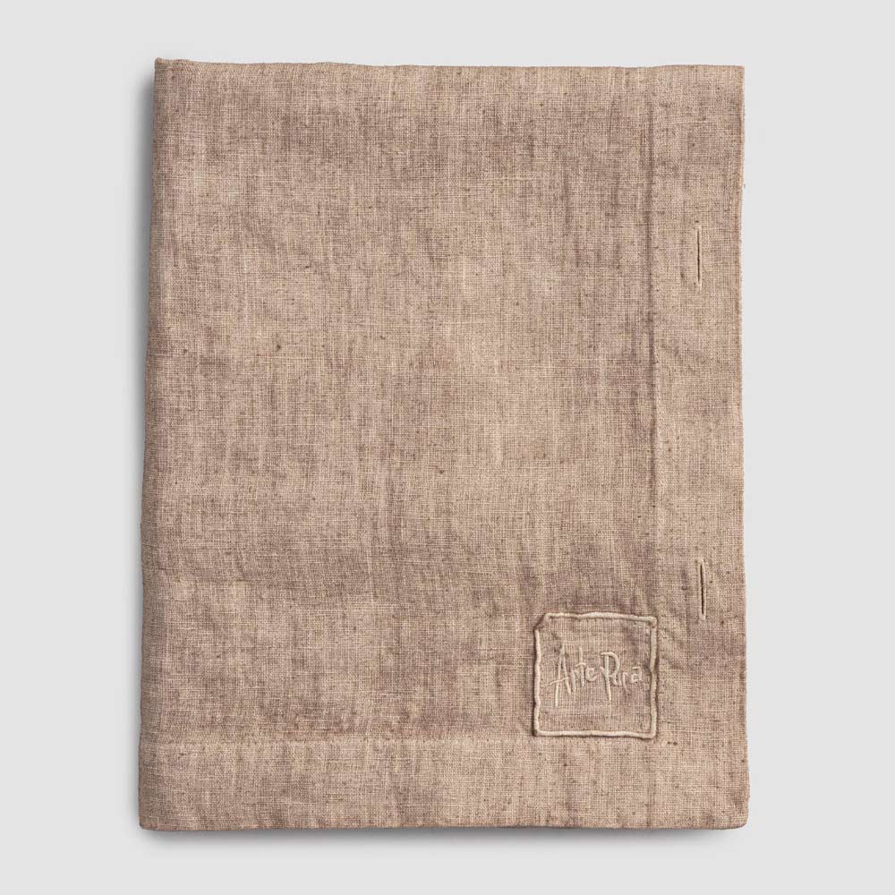 Fata de masa dreptunghiulara modulara din in, cu nasturi sidefati, de calitate realizata manual fabricata in Italia.