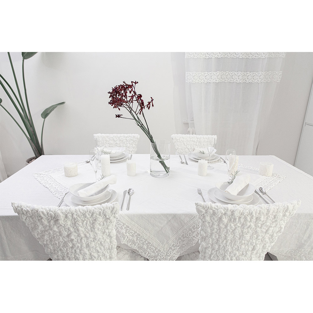 Feță de masă mare dreptunghiulară din in pur, cu margini cu sau fără dantelă, design de lux fabricat manual realizat în Italia.