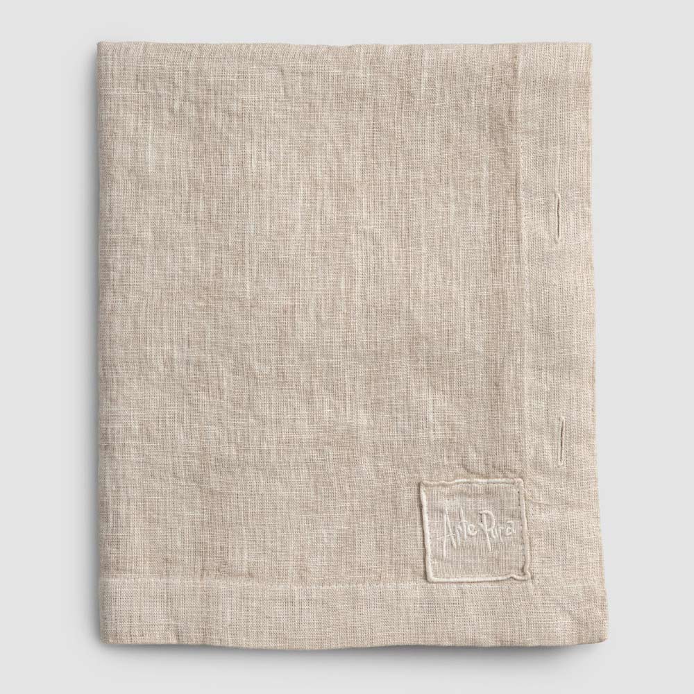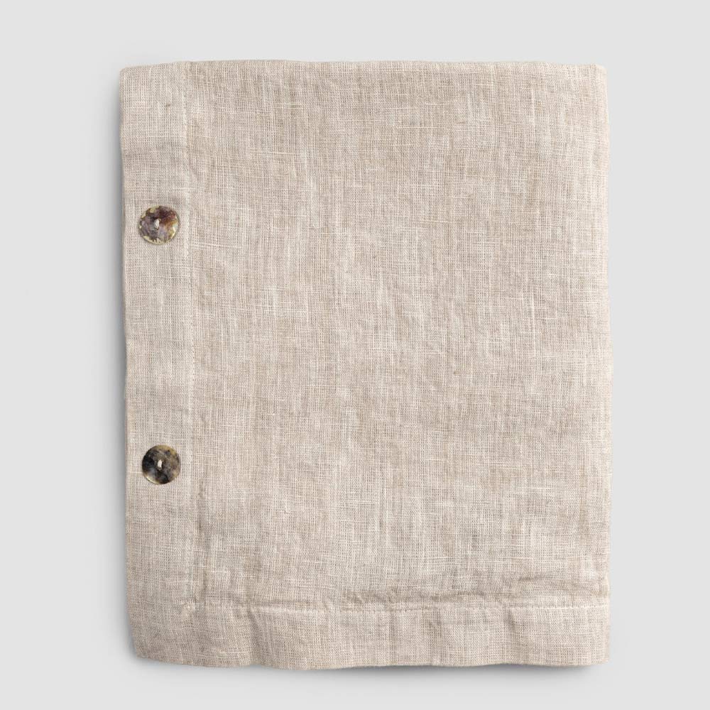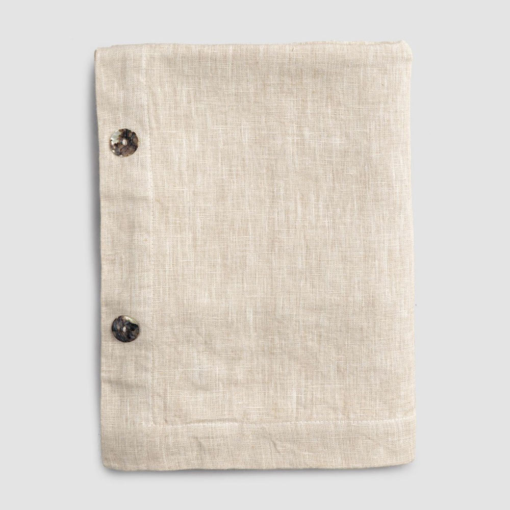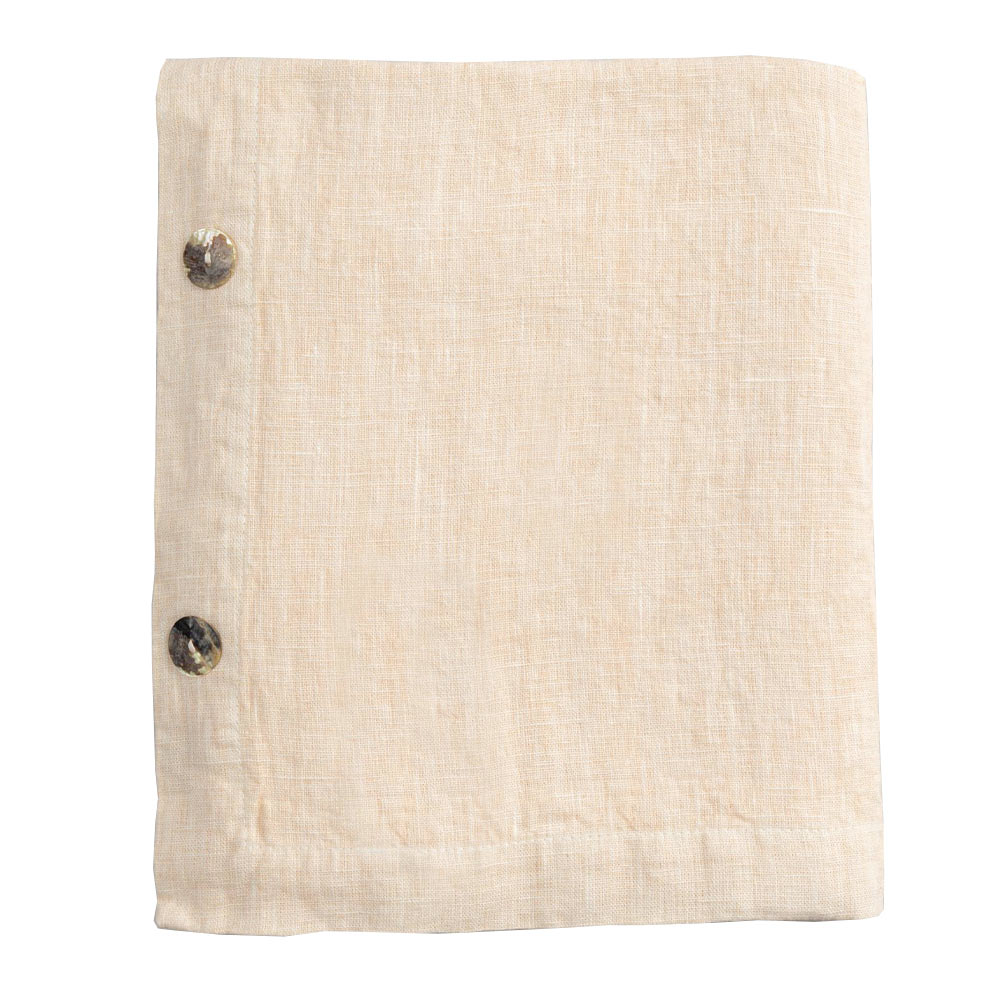 Fata de masa dreptunghiulara modulara din in, cu nasturi sidefati, de calitate realizata manual fabricata in Italia.