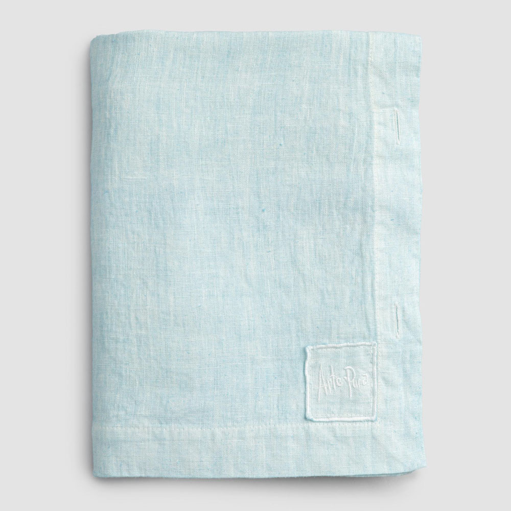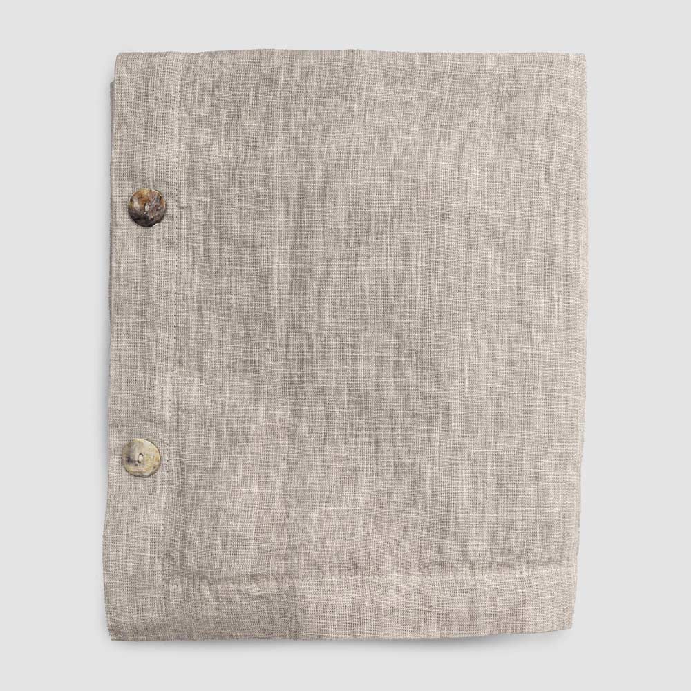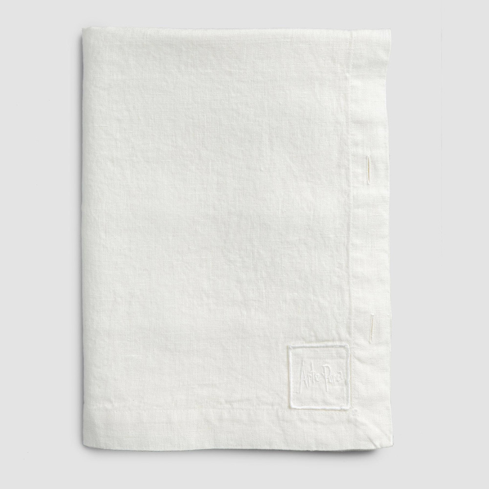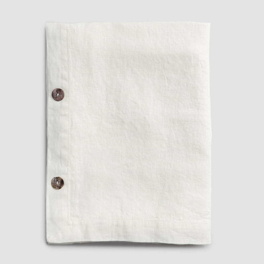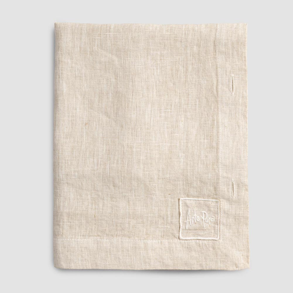 Fata de masa dreptunghiulara modulara din in, cu nasturi sidefati, de calitate realizata manual fabricata in Italia.