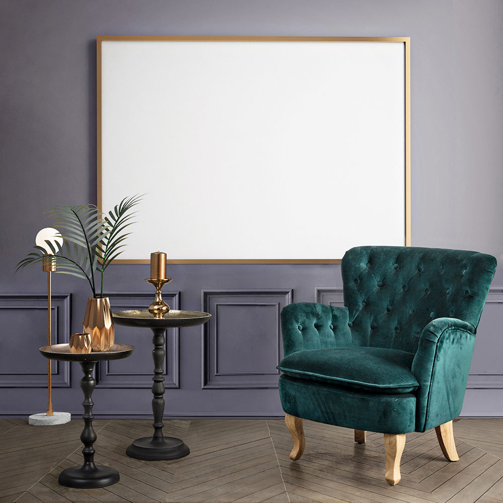 Fotoliu clasic din lemn de pin captusit cu bumbac cu efect de catifea nasturi, 3 finisaje.
