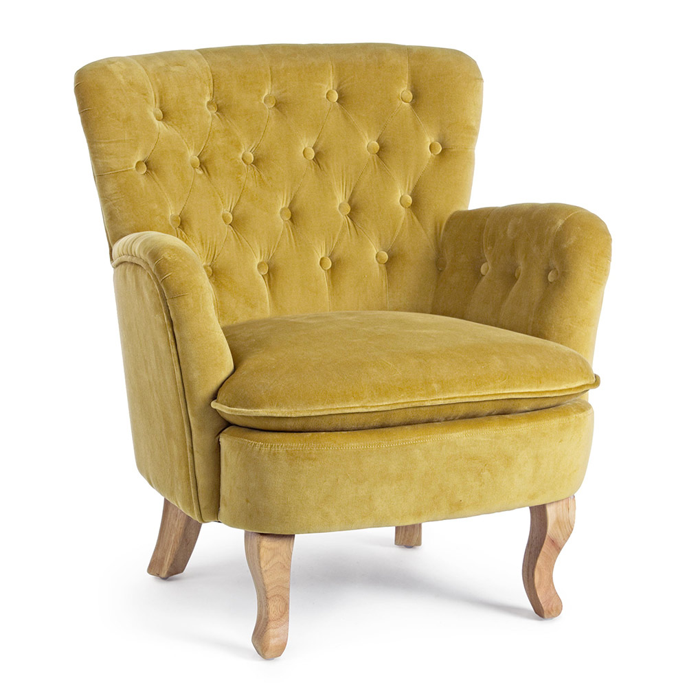 Fotoliu Clasic din Lemn si Sezut Captusit din Bumbac Matlasat - Monny